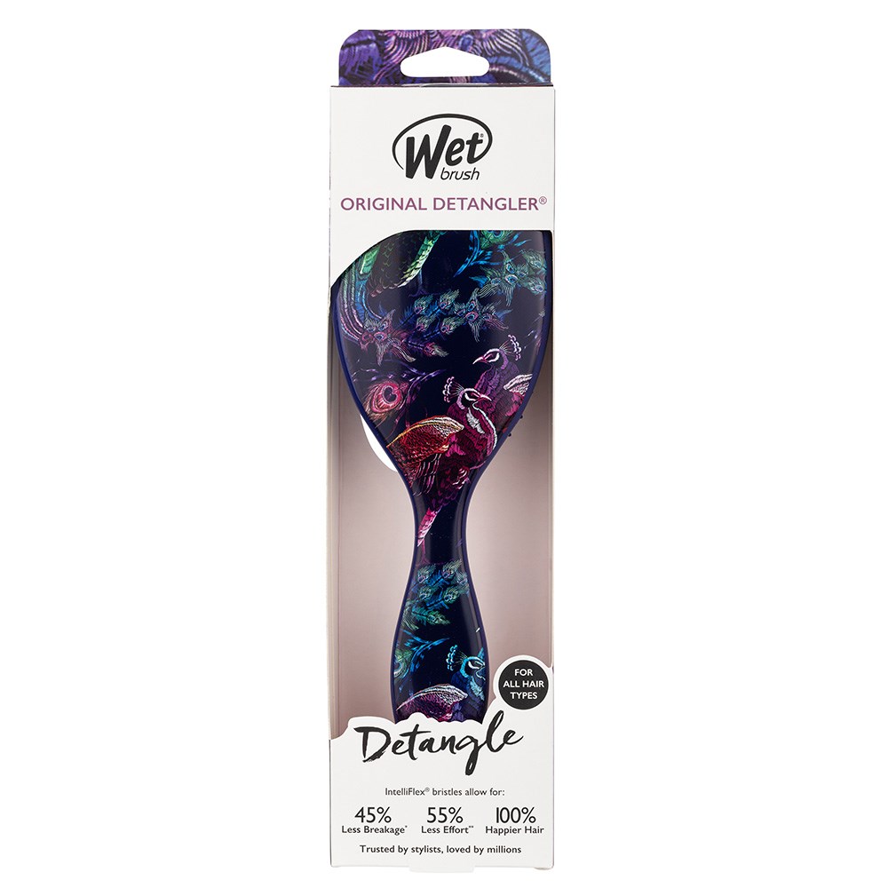 Transform your hair with this colourfully whimsical detangler! WetBrush Transformative Colour Original Detangler Peacock gently loosens knots on wet or dry hair without pulling or snagging. The moment you use it, you’ll feel the difference and never want to try another detangling brush again. Exclusive, ultra-soft IntelliFlex bristles glide through tangles on all hair types with ease. Minimise pain and protect against split ends and breakage. A rainbow awaits with this limited edition Wet Brush design.
