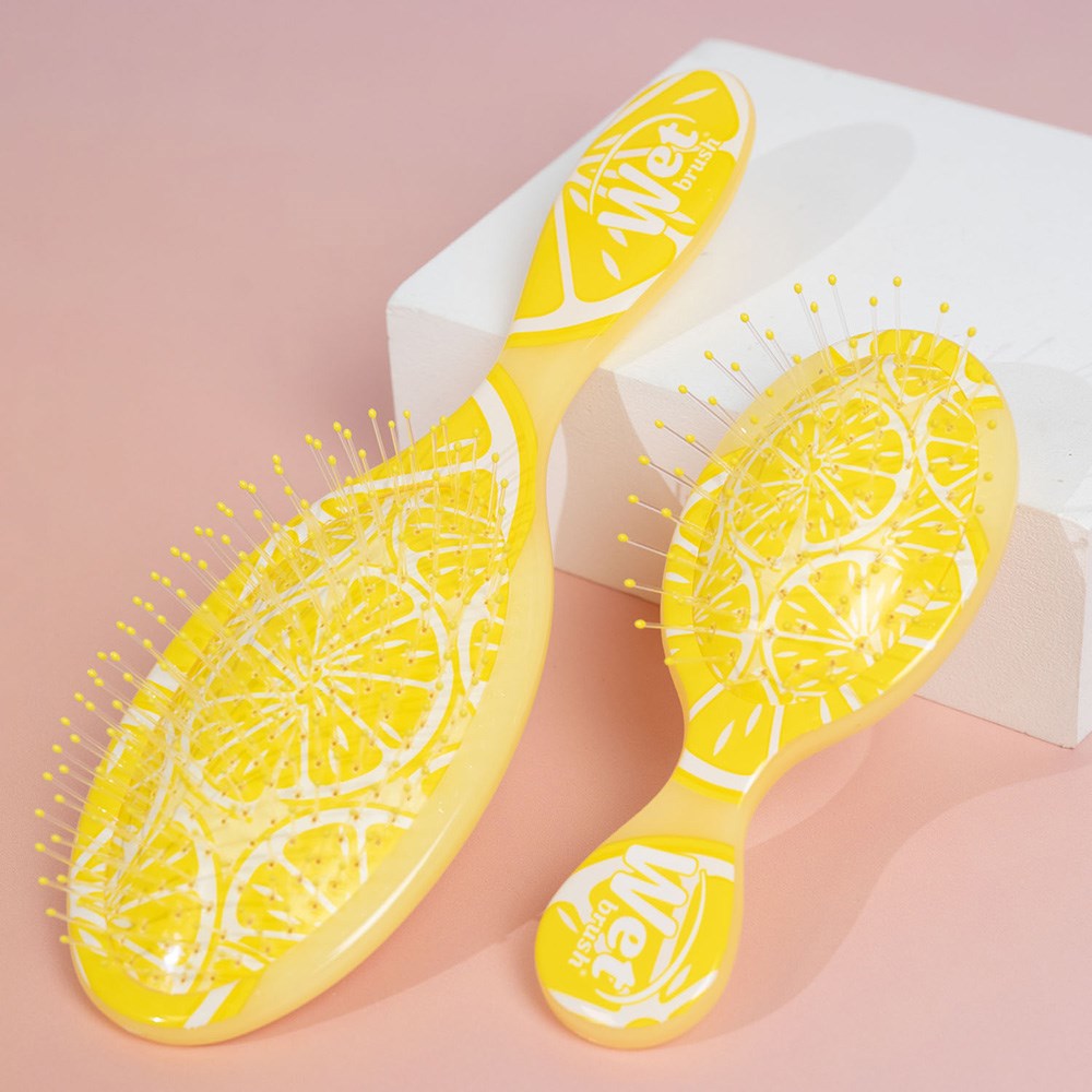 The original, award-winning brush which helps hair stay strong! WetBrush Tutti Fruitti Detangler Lemon gently loosens knots on wet or dry hair without pulling or snagging. The moment you use it, you’ll feel the difference and never want to try another detangling brush again. Exclusive, ultra-soft IntelliFlex bristles glide through tangles on all hair types with ease. Minimise pain and protect against split ends and breakage. Brush with less force so you can detangle with less damage to hair. The zest is yet to come with this limited edition WetBrush Detangler in Lemon!