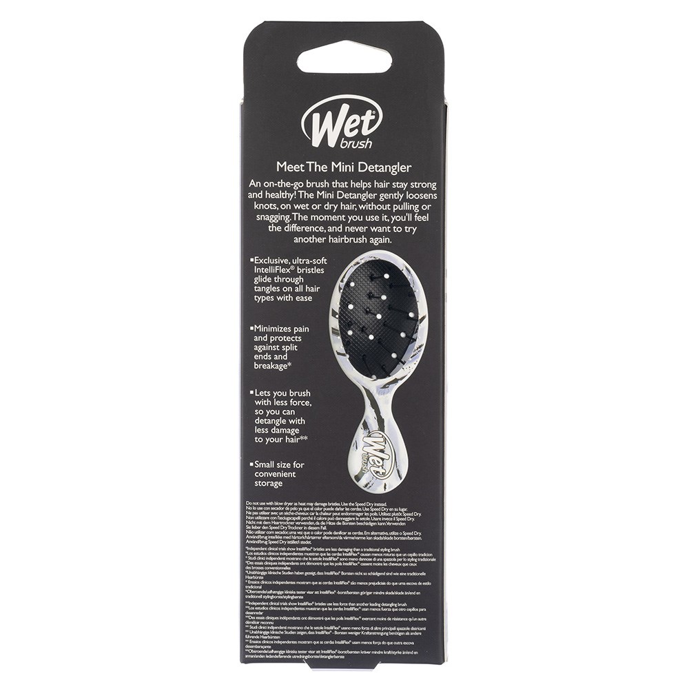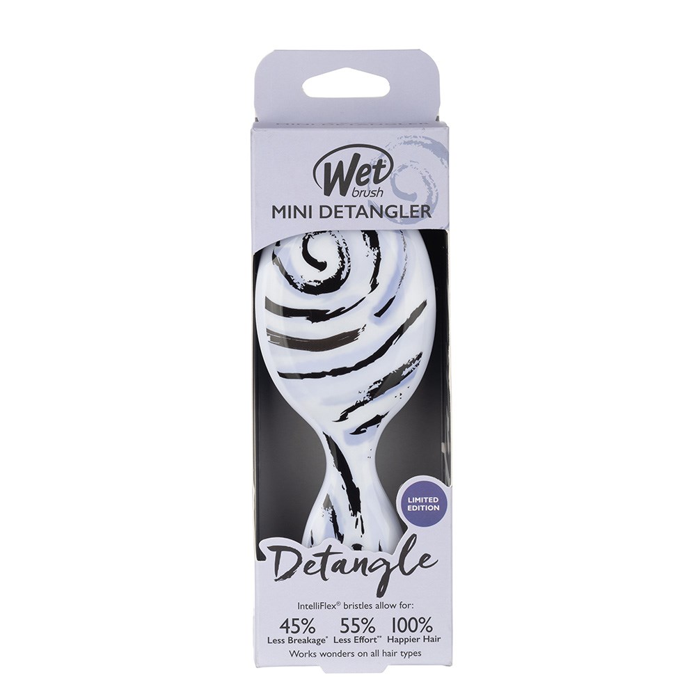 WetBrush Watercolour Motif Mini Detangler Hair Brush Purple Swirl, the detangler for life on-the-go. Wet Brush have shrunk their Original Detangler into a smaller, cuter size! Exclusive, ultra-soft IntelliFlex bristles glide through tangles with ease. Minimizing pain and protecting against split ends and breakage. All Wet Brush Detanglers let you brush with less force so you can detangle with less damage to hair.
