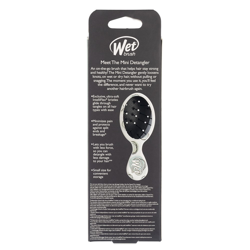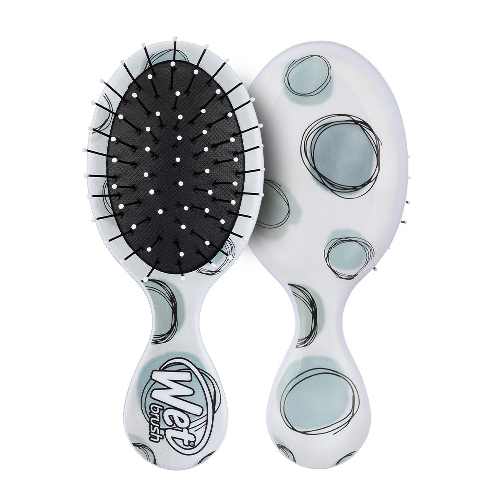 WetBrush Watercolour Motif Mini Detangler Hair Brush Teal Dots, the detangler for life on-the-go. Wet Brush have shrunk their Original Detangler into a smaller, cuter size! Exclusive, ultra-soft IntelliFlex bristles glide through tangles with ease. Minimizing pain and protecting against split ends and breakage. All Wet Brush Detanglers let you brush with less force so you can detangle with less damage to hair.