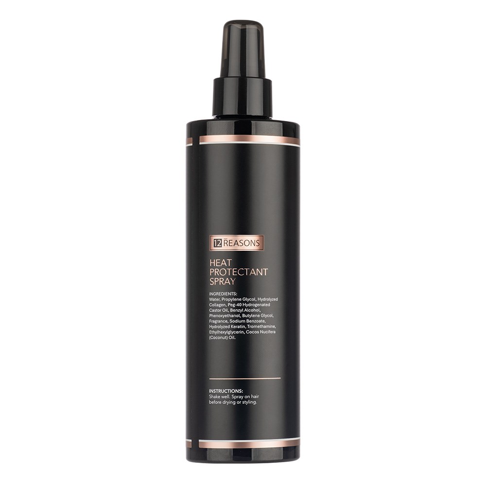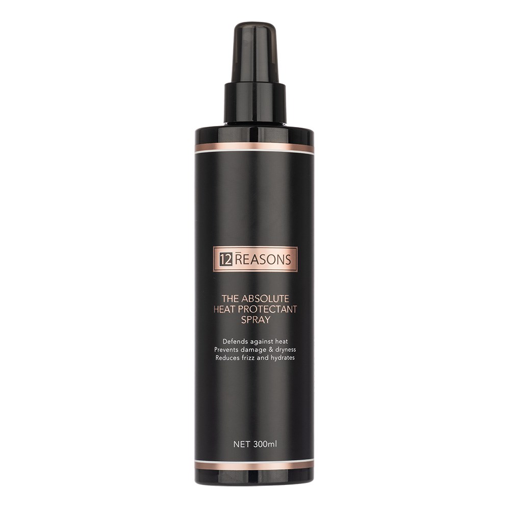 This is 12Reasons The Absolute Heat Protectant Spray. Supercharge your heat defence with transformational ingredients. Enriched with hydrolysed collagen, hydrolysed keratin, castor oil and coconut oil, this heat protectant is carefully crafted to defend against damage, dryness and frizz from within. Pump bottle delivers an ultra-fine mist so you’ll never apply too much. Use on wet or dry hair to protect hair from heat styling while infusing an uplifting fragrance. Generous 300ml size lasts styling session after styling session.