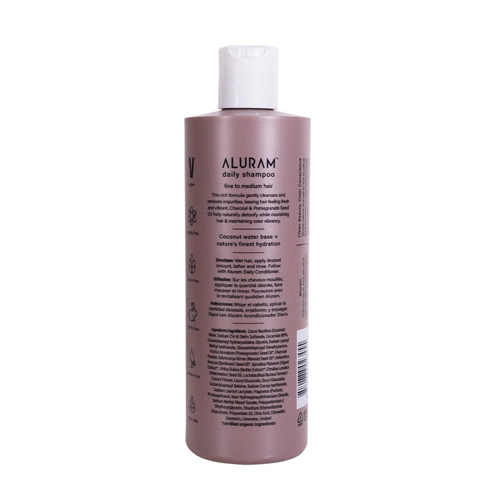 Clean beauty with a clear conscience. Free of formulas which are harmful to hair and the environment. With a powerfully plant-driven formulation started in a base of hydration-rich Coconut Water, Aluram Daily Shampoo is infused with nourishing Marula Oil to create the most effective daily, lightweight shampoo. Vegan, sulphate free, gluten free, paraben free, silicone free and colour safe. Made in the USA.