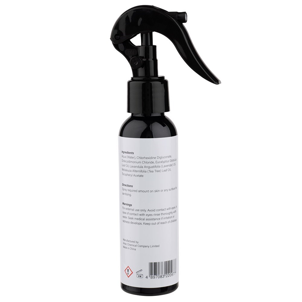 Kill 99.9% of germs with ArteMed All-Purpose Sanitiser Spray 120ml. This biodegradable, alcohol-free spray is ideal for applying to skin, hair, clothes, shoes and other surfaces for sanitising. Contains Chlorhexidine Digluconate an effective and widely used antiseptic.