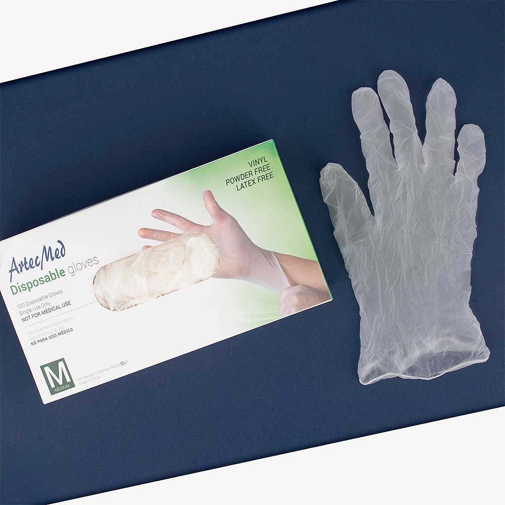 Protect your hands with ArteMed Vinyl Disposable Gloves Medium 100pk. Soft and flexible, these vinyl gloves are latex-free, hence suitable for those with a latex allergy. Powder-free and comfortable for lengthy wear. Intended for non-medical use, these disposable gloves are ideal for protecting hands during hairdressing and beauty services.