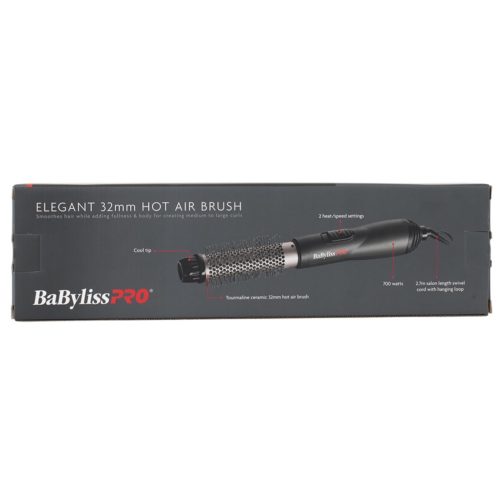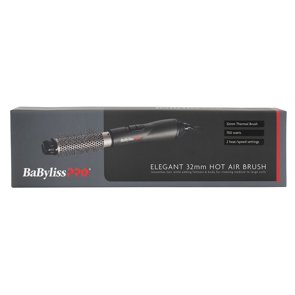 Shape styles, build body or create curls with the BaBylissPRO Elegant Hot Air Brush 32mm. The ultimate multitasking timesaver, the powerful 700 watt motor gives you freedom to style as you dry. Tourmaline ceramic barrel hot brushes delivers beautifully smooth and shiny results which last. Ball-tipped bristles won’t damage hair, and 2 heat/speed settings suit all hair types and textures.