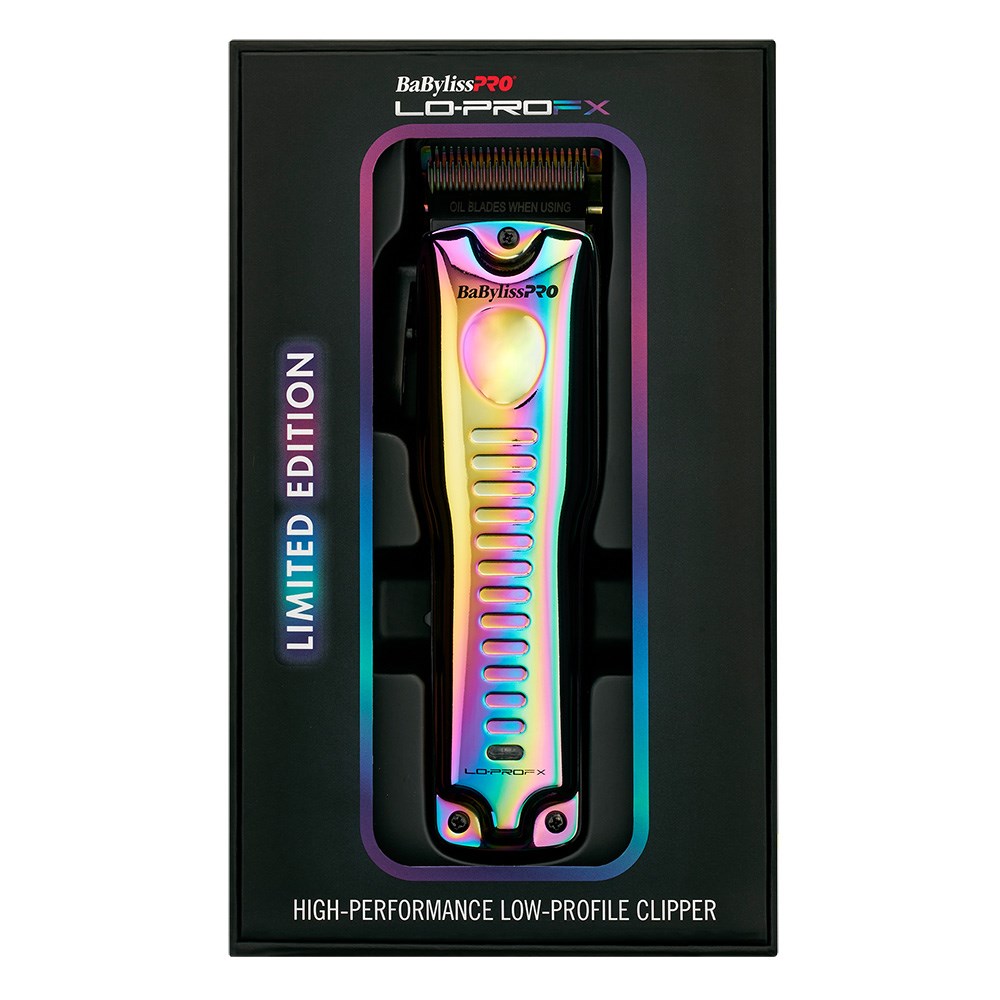 Give your tools a glow up! Limited edition BaBylissPRO LoPROFX Hair Clipper Chameleon is iridescent excellence. Ultra-low profile with ergonomic grip housing, LoPROFX Hair Clipper is BaByliss PRO’s most intuitive tool. This is incredible power, performance and, most importantly, feel. Powered by a high torque 6,800 rpm brushless motor and 3,300 mAh lithium ion battery with 2+ hours of cordless runtime. Zero gap, graphite wedge blade is low temperature, low friction and extremely durable. Great for removing bulk and creating the smoothest of fades. A perfectly balanced clipper with an emphasis on all-day comfort, feel and cutting performance.