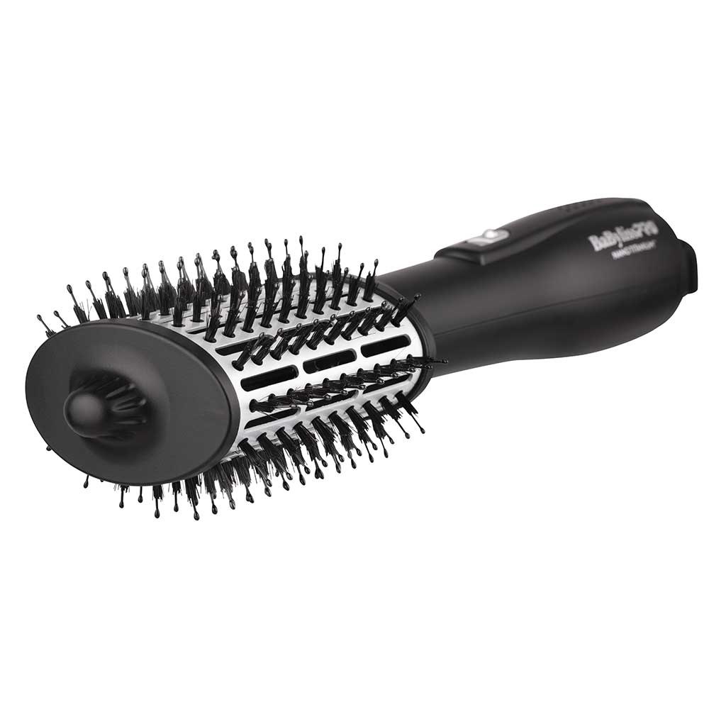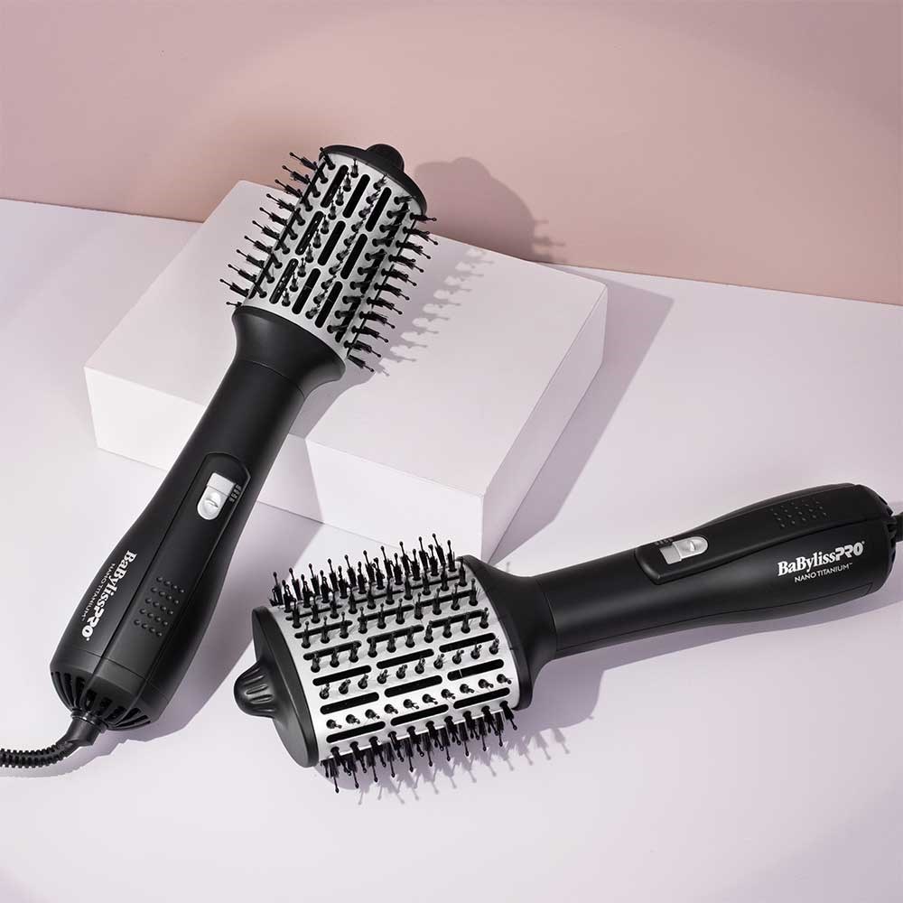 Blow-drying a chore? Styling leaves you sore? BaBylissPRO Nano Titanium Hot Air Styling Brush 89mm (3.5”) makes drying and styling a breeze. Simplify your routine with this 2-in-1 styling tool. Ultra-lightweight, ergonomic and time efficient, BaBylissPRO Nano Titanium Hot Air Styling Brush dries, smooths, volumises and adds shine in just one step. High performance 1000W DC motor combines with three temperature settings, including a cool setting to set style in place. Nano Titanium hot brush is an exceptional conductor of heat, maintaining stability and enhancing shine. 89mm (3.5”) barrel size is ideal for long hair.