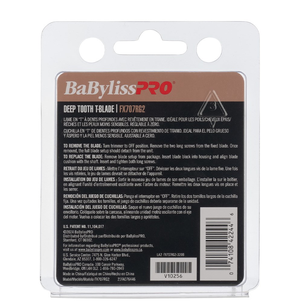 Experience the power of Barberology. BaBylissPRO Rose Gold T-Blade 2.0mm Deep Tooth FX707RG2 is a replacement blade for BaBylissPRO Skeleton Outliner Hair Trimmers. Designed to fit all BaBylissPRO FX787 Outliner Trimmer models, this is the standard blade on the BaBylissPRO RoseFX Outliner Lithium Trimmer. 360° exposed, zero gap T-blade with DLC and titanium coating. Corrosion resistant and durable.