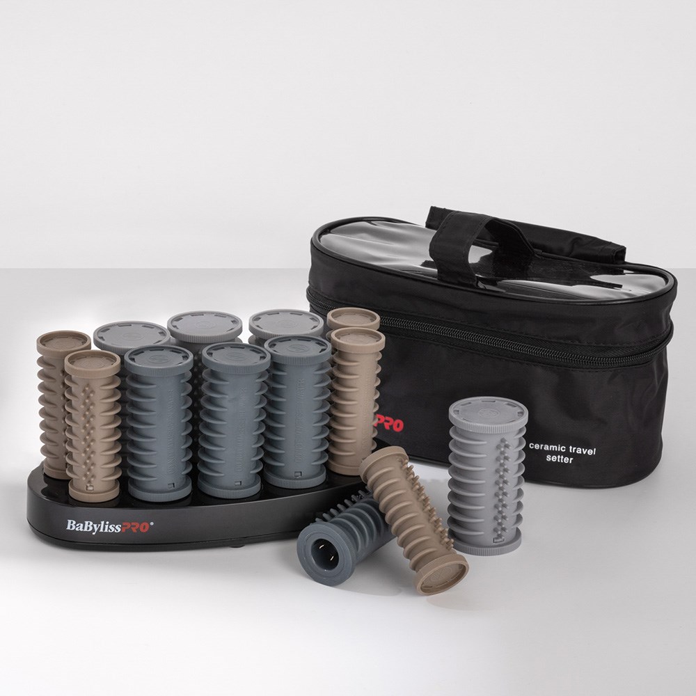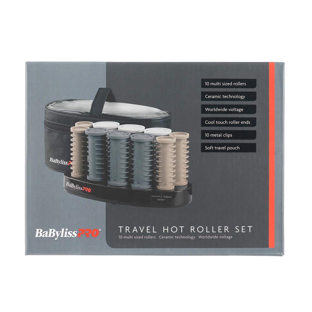 Let’s travel in style! Meet the BaBylissPRO Travel Hot Roller Set, a 10 piece multi-sized hot roller set offering everything you need for fast and easy curls, waves and volume on-the-go. With 10 rollers in 3 sizes, silky smooth results are a given courtesy of Ceramic Titanium Technology which heats quickly and evenly. Dual voltage hair curlers for worldwide usage.