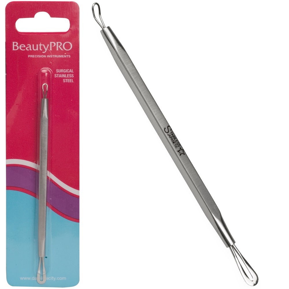 The BeautyPRO Comedo Extractor is a professional-grade skincare tool designed to help you safely and effectively remove blackheads, whiteheads, and clogged pores. Crafted from high-quality stainless steel, this tool features dual tips - a small loop end for gentle extraction of whiteheads and a flat end for pressing out blackheads. It’s perfect for use after steaming or cleansing the skin to ensure a smoother complexion by eliminating impurities without damaging the skin. Its ergonomic design provides a comfortable grip, making it easy to control during use. Compact and durable, the BeautyPRO Comedo Extractor is an essential addition to your skincare routine for achieving clearer, healthier-looking skin.