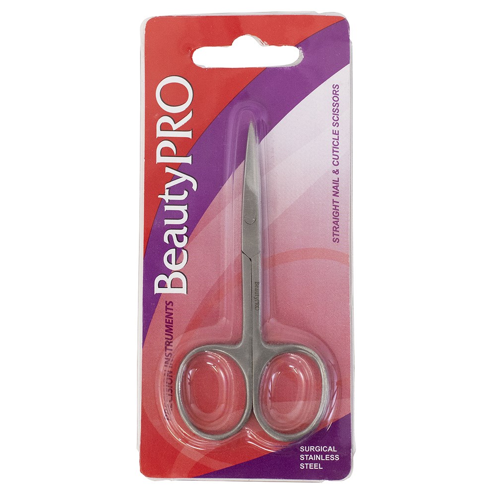 Precision meets performance with the BeautyPRO Straight Nail & Cuticle Scissors. Crafted from high-quality stainless steel, these scissors feature ultra-sharp, straight blades designed for clean, accurate trimming of nails and cuticles. The ergonomic design ensures comfortable handling and control, making them perfect for both professional salon use and at-home grooming. Whether you're tidying up your manicure or removing hangnails with care, these durable scissors deliver smooth, precise results every time.