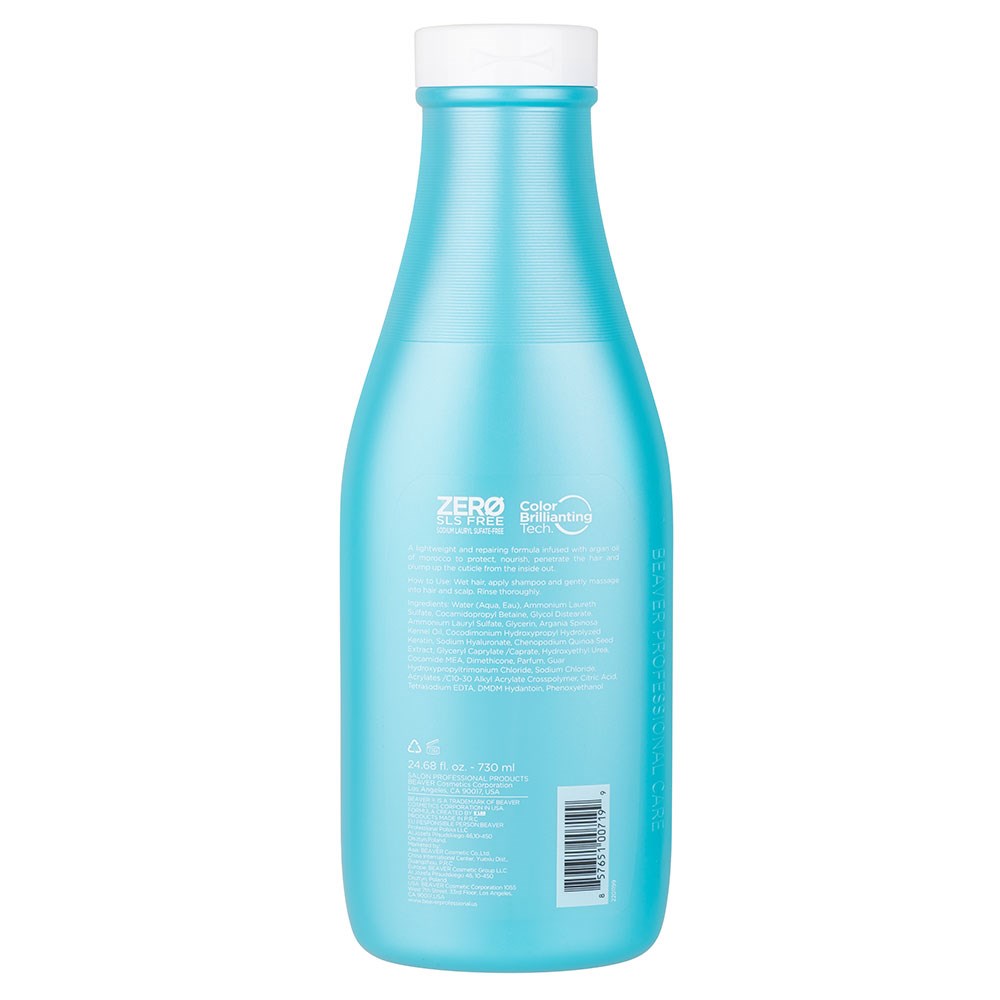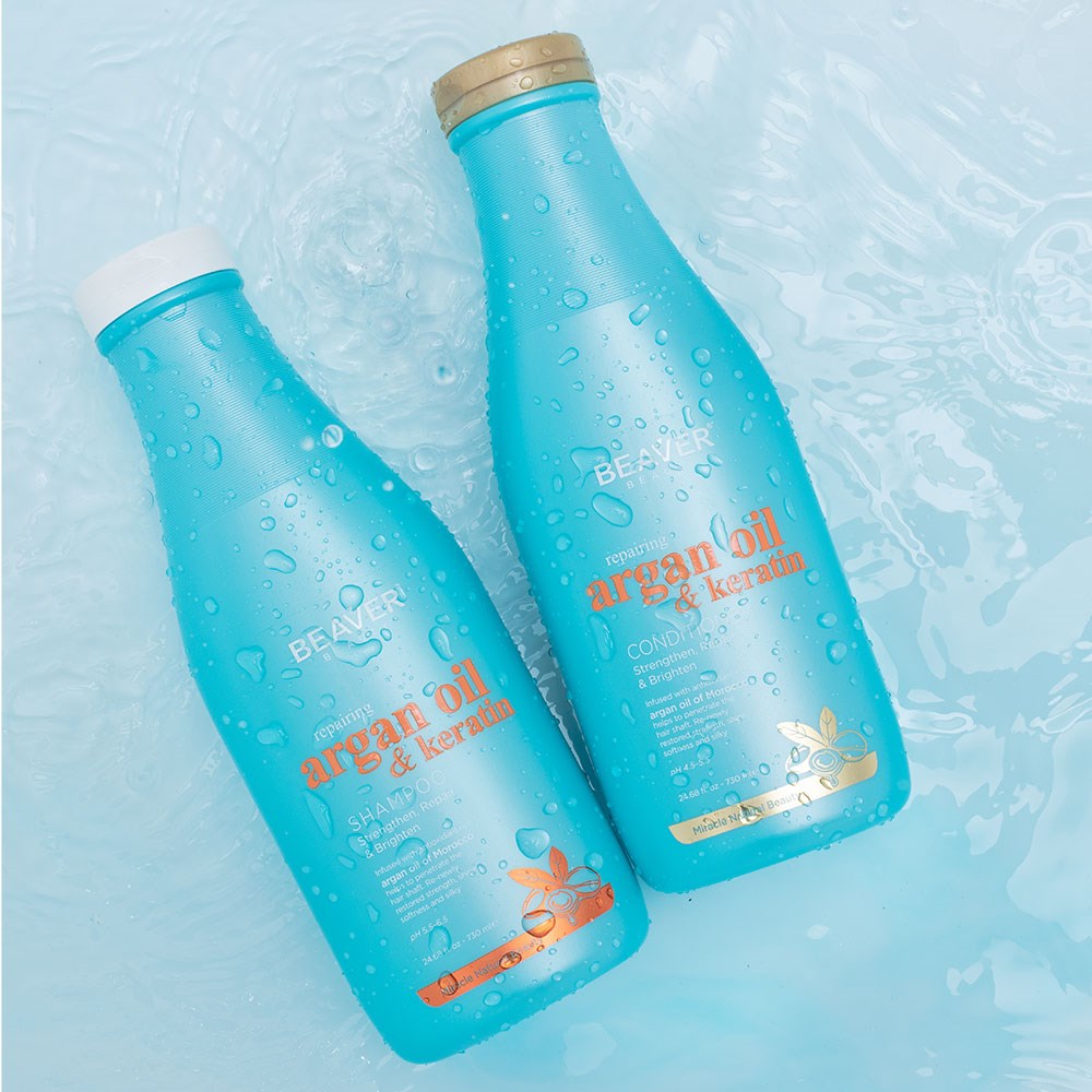 The power of nourishing, antioxidant-rich argan oil and strengthening keratin. Beaver Argan Oil and Keratin Repairing Shampoo 730ml penetrates the hair shaft to plump up the hair cuticle from the inside out. Enjoy newly restored strength, shine and silky softness. This lightweight yet ultra-moisturising formula gently cleanses hair without drying it out, revealing renewed vibrancy. A colour-safe shampoo free from sulphates and parabens.