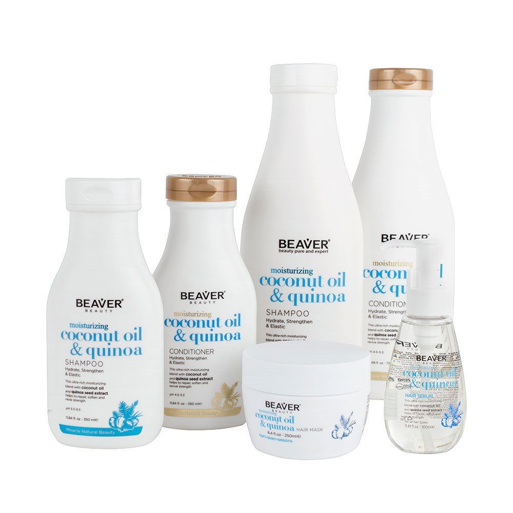 Hydrate, strengthen and repair. Formulated with a super moisturising blend of coconut oil and quinoa seed extract, Beaver Coconut Oil and Quinoa Moisturising Conditioner deeply hydrates without weighing hair down. The addition of coconut oil and quinoa seed extract helps repair, soften and revive. Smooths and protects hair. Colour-safe formula free from sulphates and parabens.