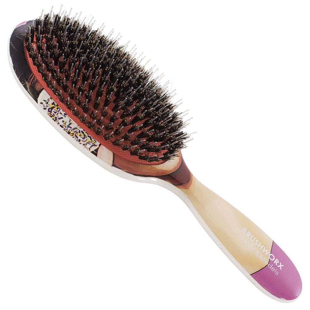 Brushworx Artists and Models Hair Brush Collection, this imaginative and unique design series elevates the simple cushion brush into a work of art! Utilising porcupine bristle (nylon and boar bristle) and a soft cushion base, Sugar Baby creates soft, silky hair with incredible shine and lustre. Perfect for detangling, blow-drying hair smooth, finishing updos, distributing styling product and brushing out heat styled curls. Brushworx Artists and Models, where brushes become an imaginative subject of desire.
