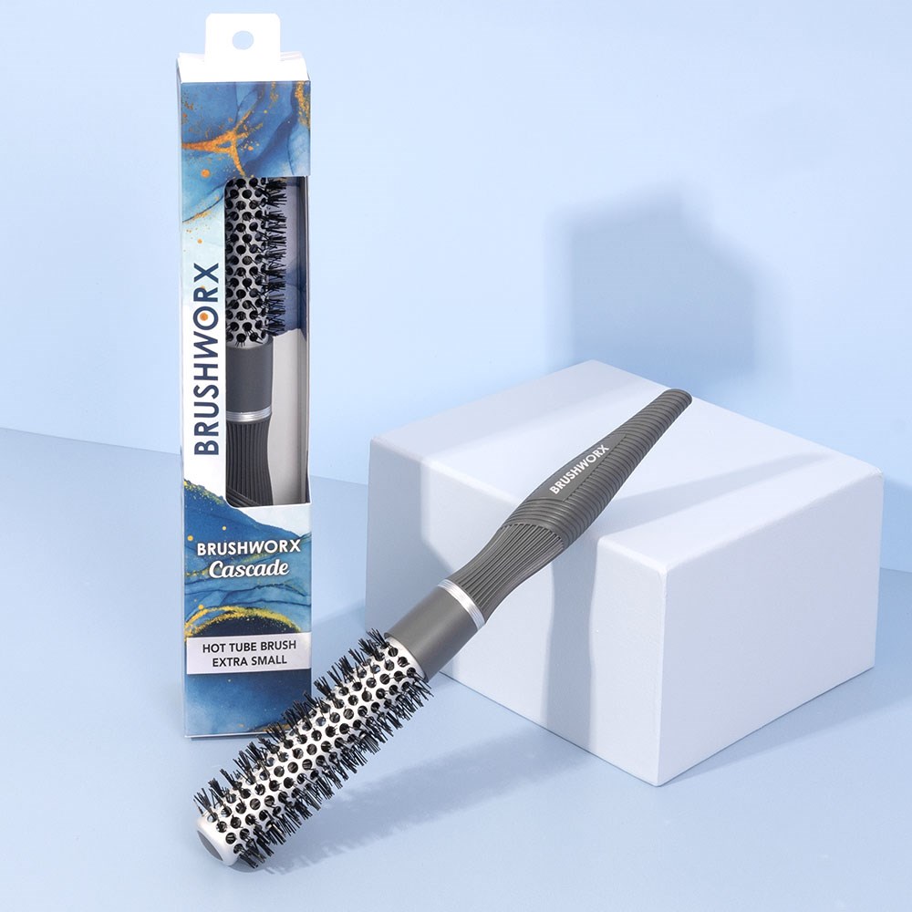 A hairstylist’s favourite brush! Brushworx Cascade Hot Tube Hair Brush Extra Small takes the salon essential and makes it even better. More comfortable, more lightweight and more balanced. A texturised, rubberised handle improves grip and control. Nylon bristles create the perfect amount of tension for styling. Speed up your blow-drying time with the hollow, vented ceramic coated barrel, leaving hair silkier, shinier and smoother. Brushworx is proudly Australian-owned.