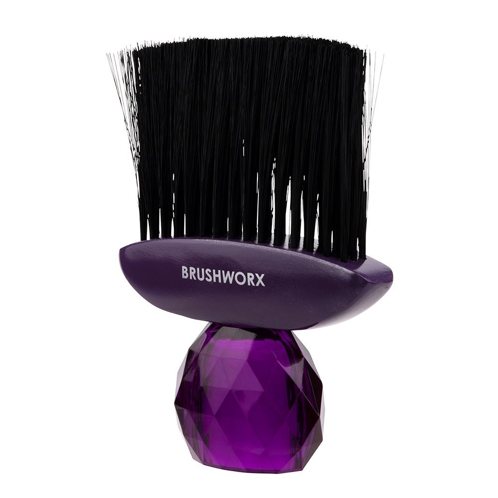 Let Brushworx put some style back into this salon workhorse! The Brushworx Crystal Neck Brush Purple features a glamorous onyx gem handle and super soft flexible nylon bristles. The bristles are soft and gentle on client’s skin, yet firm enough to banish all stray hairs. You’ll be proud to show the Brushworx Black Crystal Neck Brush to your clients!