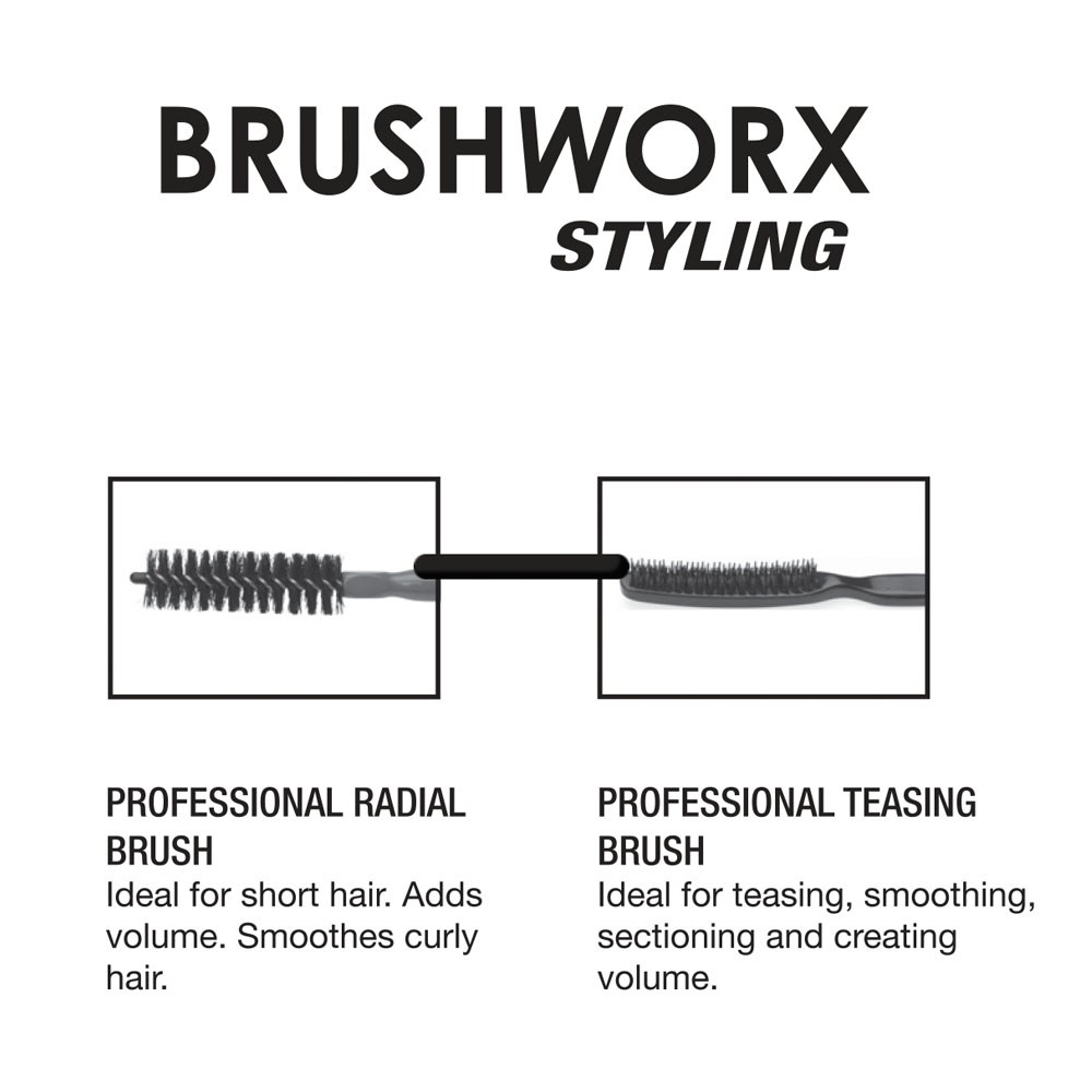 The Brushworx Styler Bottle Brush features reinforced bristles which grip hair without harsh pulling and a heat resistant wooden handle for greater durability. Perfect for adding volume, stretching out or creating tight curls on short length hair. Bottle Brush ideal for all hair textures.