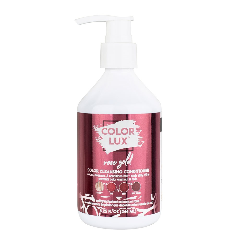Deposit buildable colour with every wash. Color Lux Colour Cleansing Conditioner Rose Gold cleanses, conditions and colours - good things come in threes! Designed to gently cleanse and condition hair while depositing colour pigments, adding beautiful hues to hair. The more clients use, the more vibrant the colour. Intensifies and maintains existing hair colour between salon visits. Blended with coconut oil for alluring shine.