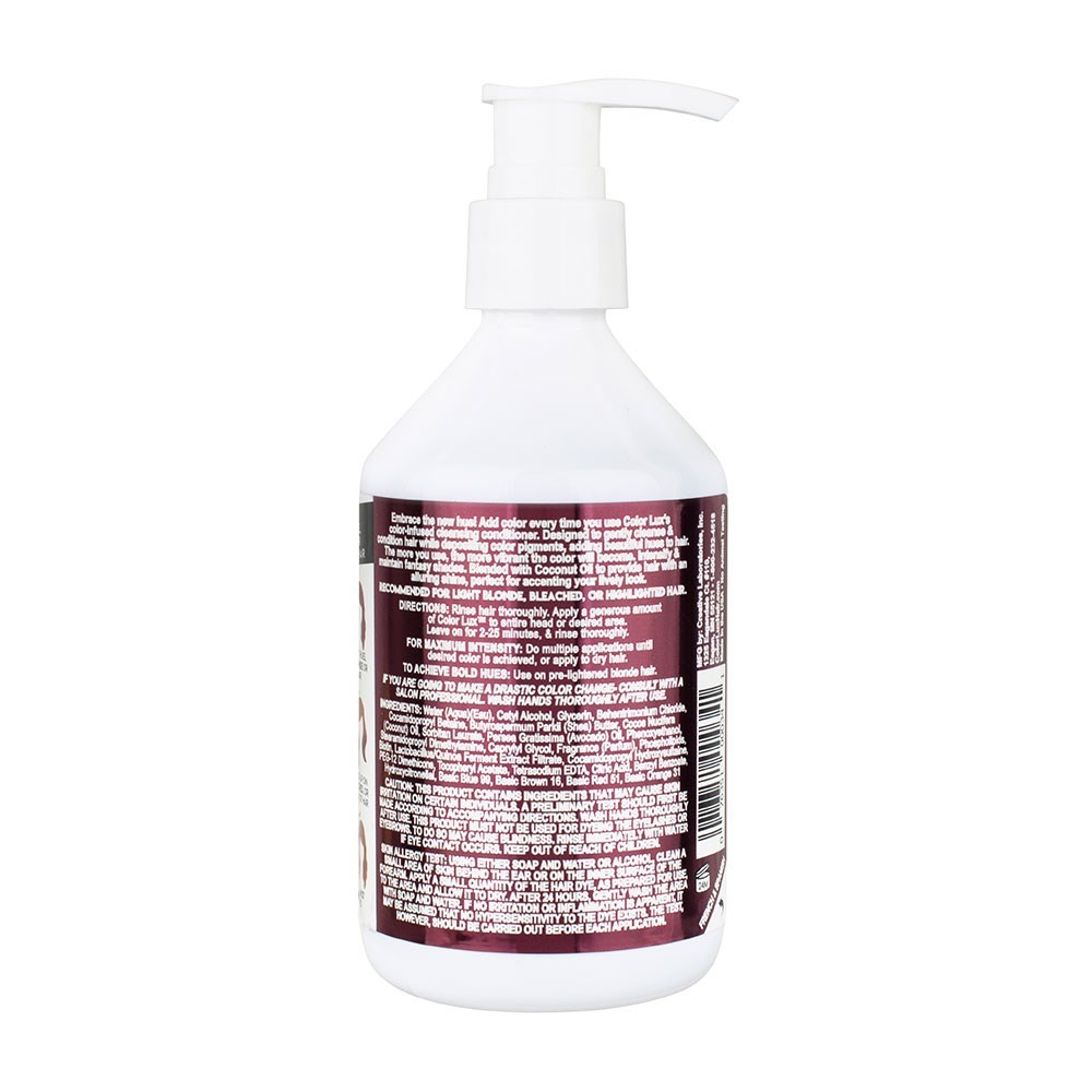 Deposit buildable colour with every wash. Color Lux Colour Cleansing Conditioner Sangria cleanses, conditions and colours - good things come in threes! Designed to gently cleanse and condition hair while depositing colour pigments, adding beautiful hues to hair. The more clients use, the more vibrant the colour. Intensifies and maintains existing hair colour between salon visits. Blended with coconut oil for alluring shine.