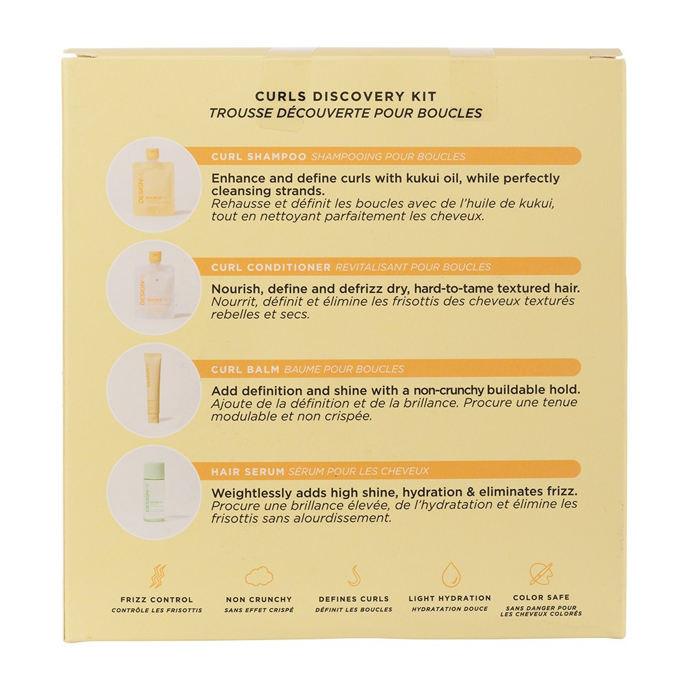 A limited edition kit, perfect for trying (and falling in love with) this stylist-approved routine for complete curl definition. DESIGNME Discovery Kit Curls includes Bounce.ME Curl Shampoo, Conditioner, Curl Balm and Gloss.ME Hair Serum. This kit deeply hydrates, enhances curl patterns and tames frizz without added weight. All products are free from SLS, SLES and parabens. 100% vegan and cruelty-free.
