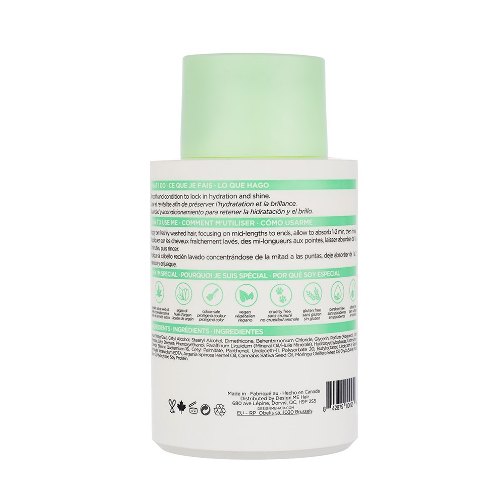 Consider thirsty hair a thing of the past. DesignME Gloss.ME Hydrating Conditioner is a unique, nourishing conditioner. Transform dry hair into strong, soft and shiny. The (not so) secret ingredient? Just the right amount of Cannabis Sativa Seed Oil added to a blend of nourishing oils and proteins, rich in fatty acids and vitamins A, C and E.