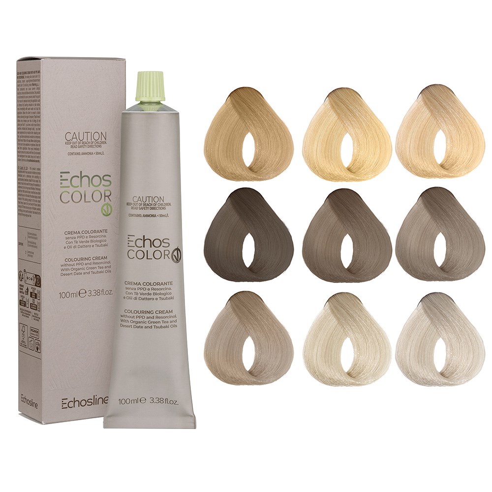 Incredible depth and longevity with reduced impact. Echos Color Vegan Hair Colour 7.12 Medium Blonde Cold Irise respects professionals, consumers and the environment. This 100% vegan colouring cream is formulated without paraphenylenediamine (PPD) and resorcinol. Rich, long-lasting permanent hair colour boosted by green tea extract for longevity, desert date oil for revitalisation and Tsubaki oil for shine. Made in Italy, this is elite hair colour turned vegan.