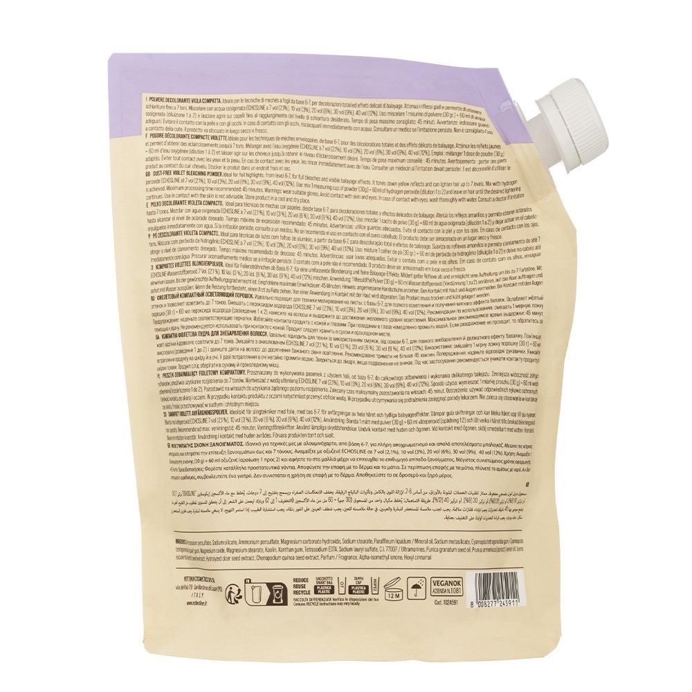 Hairdressing Bleach delivered differently. Unlike other professional hair bleach on the market, Echos Light Dust-Free Bleach Violet is housed in pouch packaging for easy storage and less plastic footprint. Made in Italy by Pettenon, this 100% vegan bleach is ideal for highlights, full bleaches and balayage. Anti- yellow, protective lift violet bleach. Lightens hair by up to 7 levels.