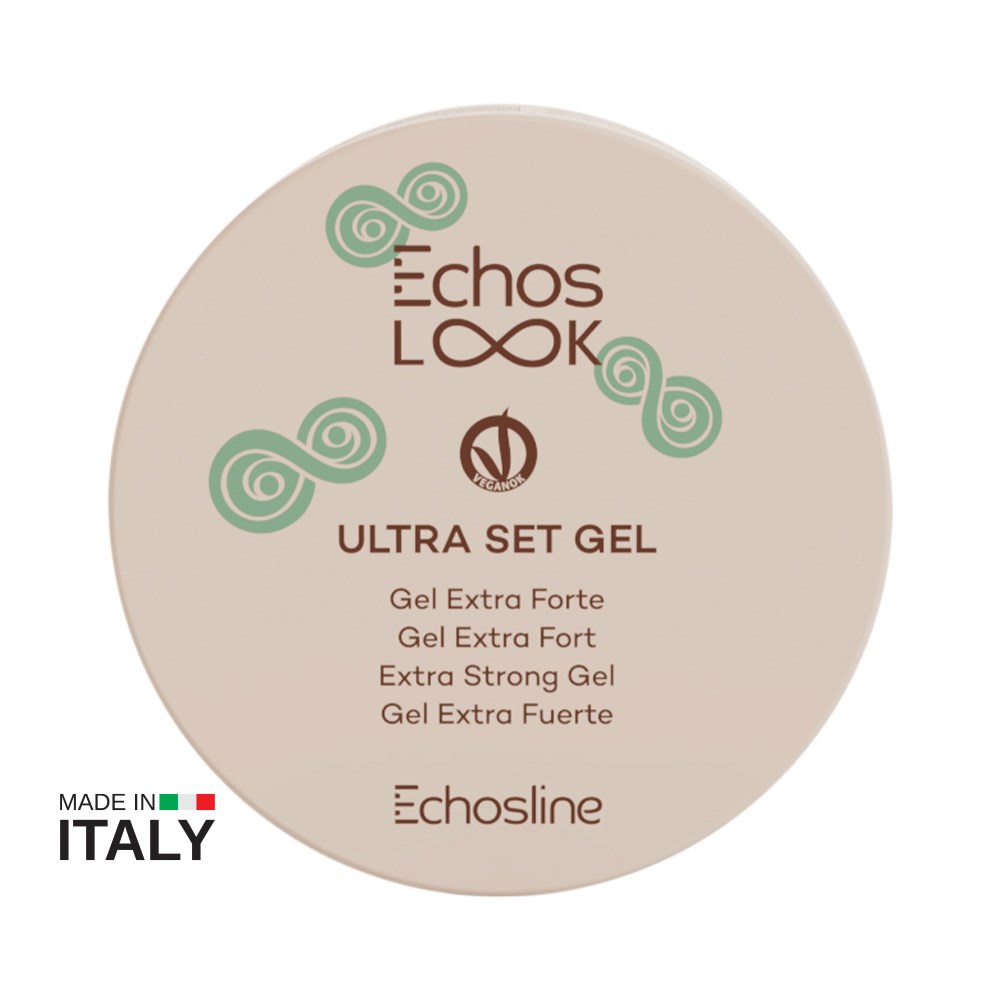 Infinite possibilities. Echos Look was created to enable endless ways to express our individuality. Echos Look Ultra Set Gel is high-performance, forward-looking and 100% vegan. This quick drying, extra-strong hair gel adds texture and volume to the hair. Long-lasting styling without any residue. Bamboo extract and pisum sativum strengthen, hydrate and soothe strands.