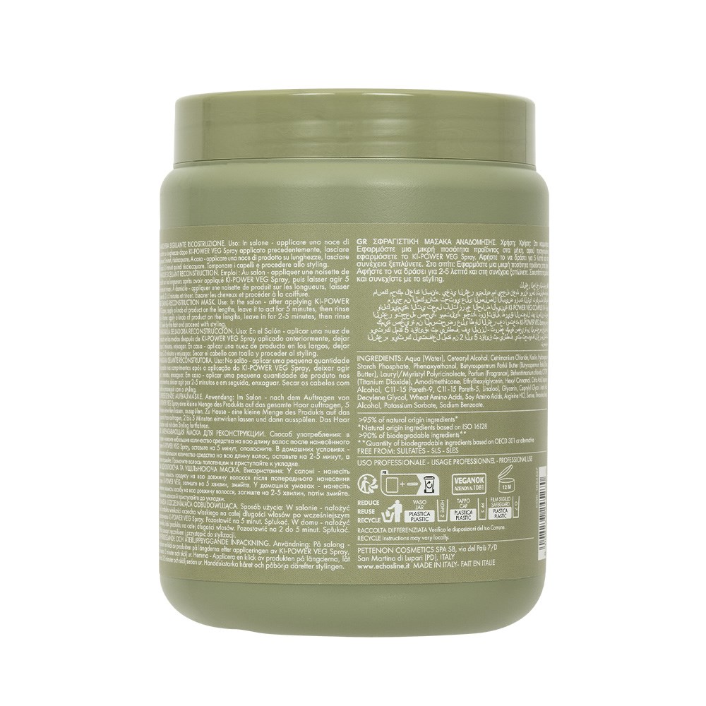 Colouring, lightening, blow-drying and styling all take a toll on hair. Renew hair’s structure with Echosline Ki-Power Veg Complex, a potent blend of amino acids which repairs and regenerates. Echosline Ki-Power Veg Hair Treatment Mask 1L nourishes and replumps hair, leaving it soft, elastic and manageable without being weighed down. Powered by Ki-Power Veg Complex with 18 amino acids, vegetable keratin and pea, soy and wheat extracts, this 100% vegan hair mask contains >95% ingredients of natural origin* and >90% biodegradable ingredients**. Free from silicones, Sodium Lauryl Sulphate (SLS) and Sodium Lauryl Ether Sulphate (SLES).