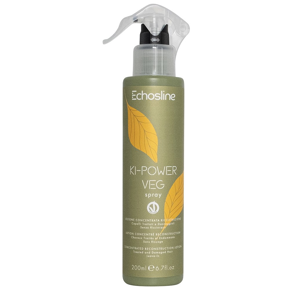 Colouring, lightening, blow-drying and styling all take a toll on hair. Renew hair’s structure with Echosline Ki-Power Veg Complex, a potent blend of amino acids which repairs and regenerates. Echosline Ki-Power Veg Spray is a concentrated reconstruction lotion hair treatment which leaves hair resilient and strengthened. Powered by Ki-Power Veg Complex with 18 amino acids, vegetable keratin and pea, soy and wheat extracts, this 100% vegan spray contains >95% ingredients of natural origin* and >80% biodegradable ingredients**. Free from silicones, Sodium Lauryl Sulphate (SLS) and Sodium Lauryl Ether Sulphate (SLES).