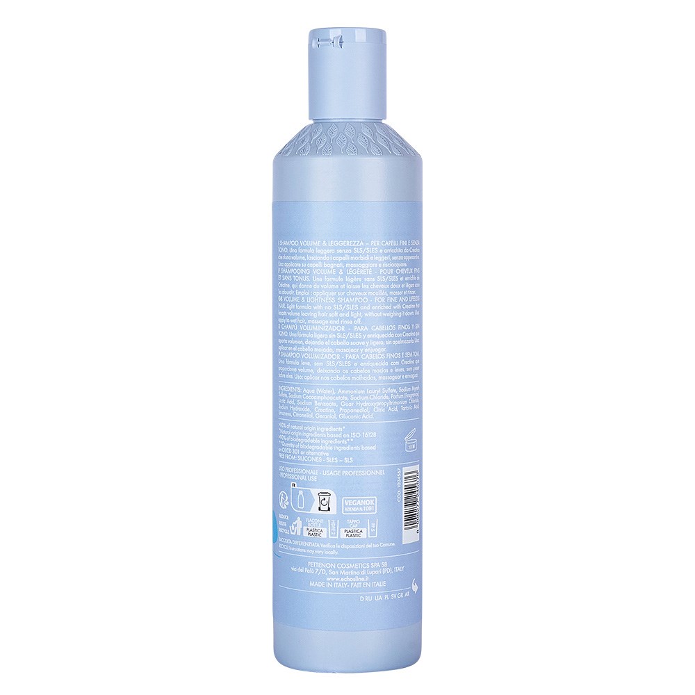 The ideal volumising shampoo. Echosline Volume Shampoo is a lightweight volumising formula which gently cleanses. Designed for fine and lifeless hair, this 100% vegan shampoo is pH balanced and harnesses the nourishing power of creatine. Volume is boosted and hair is left soft and light with nothing to weigh it down. >90% ingredients of natural origin*. >90% biodegradable ingredients**. Free from silicones, Sodium Lauryl Sulphate (SLS) and Sodium Lauryl Ether Sulphate (SLES).