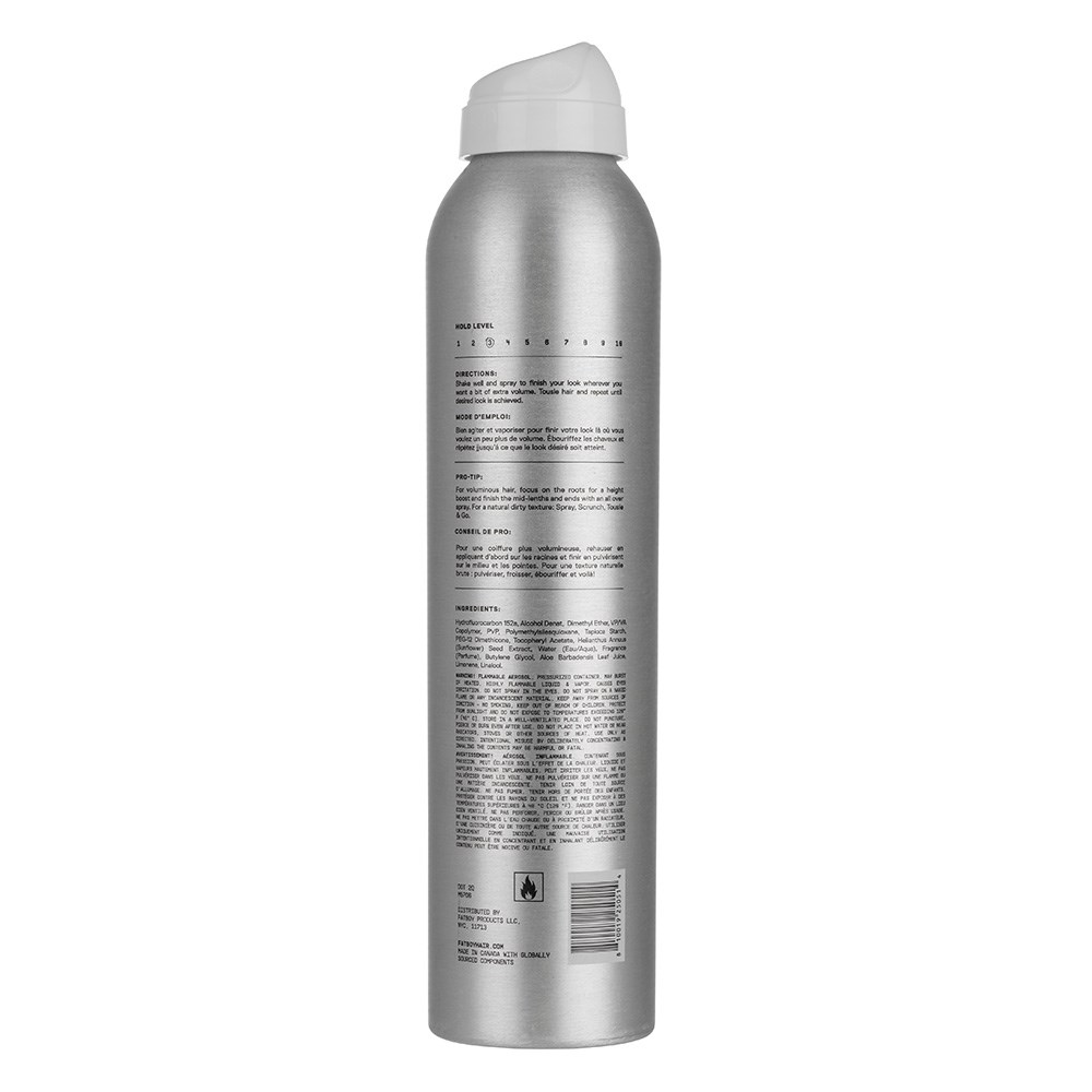 Spray, tousle and go. It’s as simple as that with Fatboy Tousle & Go Texture Spray. This versatile styling spray has been specifically formulated to add volume, definition and workable hold to all hair types. Designed to add hold and tame flyaways with a light flexible finish without the crunchiness. The perfect blend of light hold texturising spray and dry shampoo makes this a hair must-have styling spray for fine hair. Get ready to top the charts with stylist-grounded, performance-driven Fatboy.