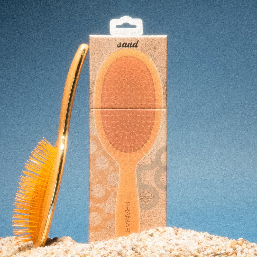 Pack your bags. We’re going on a Baecation! Inspired by a Hawaiian honeymoon, Framar Detangle Hair Brush Baecation Sand is your new favourite. Effortlessly detangle wet or dry hair with ease. Ideal for all hair types, including wigs and hair extensions. Flexible bristles deliver pain-free brushing. Not only a detangler, this brush is also great at brushing colour or toner through hair for even application or assist in styling, such as brushing out curls.