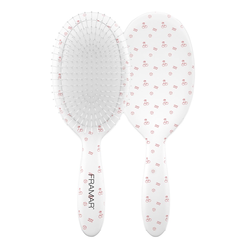 Your lucky charms for detangling! Framar Detangle Hair Brush Get Lucky White in Lucky is an adorable blend of playful design and serious detangling power. This brush effortlessly detangles wet or dry hair with ease. Ideal for all hair types, including wigs and hair extensions. Flexible bristles deliver pain-free brushing. Not only a detangler, this brush is also great at brushing colour or toner through hair for even application or assist in styling, such as brushing out curls.