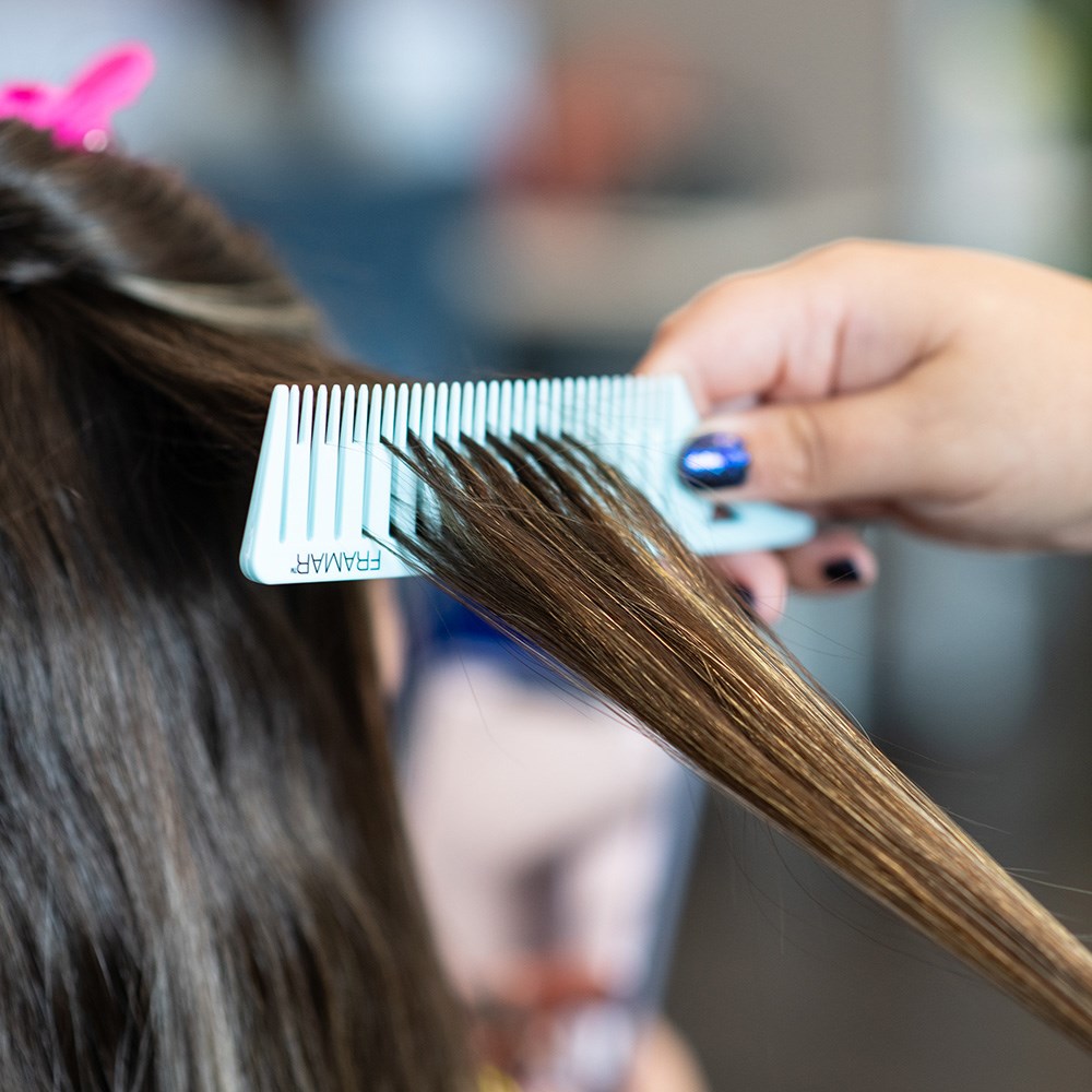 - Comb separates hair into even sections ready for painting