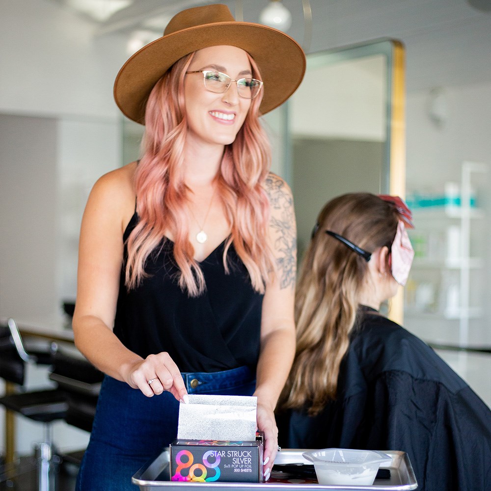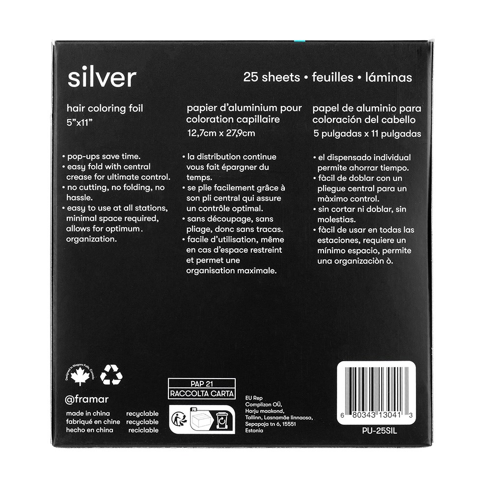 This non-slip foil is everything a stylist dreams of! Framar Pop Up Foil Sampler Star Struck Silver is available in a smaller box for your convenience. Great for mobile hairdressing, travelling or trying out Framar without commitment. Pre-cut, pre-folded and ready when you are. The embossed texture prevents slippage so you can breeze through any colouring service. Featuring the signature, perforated push up base, designed to keep hairdressing foils extra perky for ultimate convenience. Includes 25 sheets with each sheet measuring 12.7cm x 27.94cm.