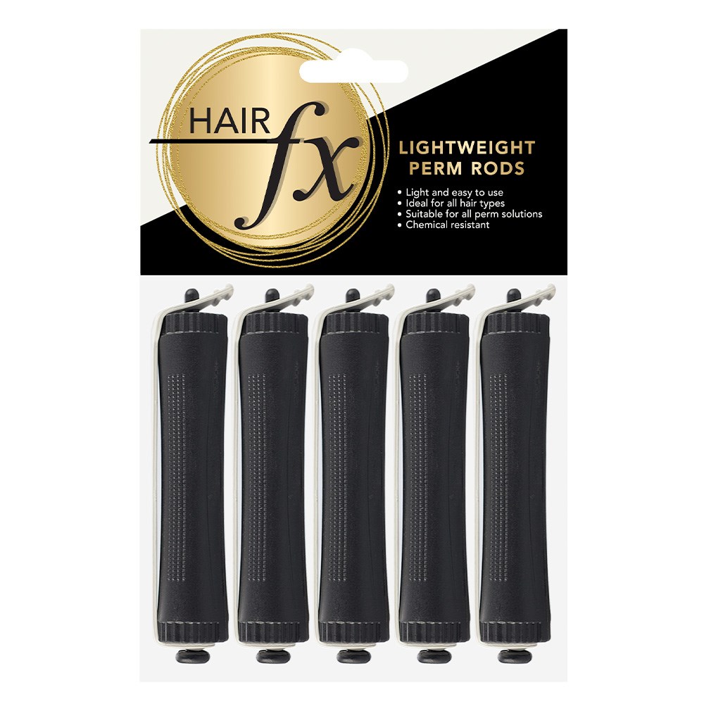 Better perms with Hair FX. Hair FX Lightweight Perm Rods 5pk in Black are 16mm diameter and perfect for creating looser curls and waves on medium to long hair. These lightweight, easy-to-use hairdressing perm rods from HairFX are made from quality plastic, ensuring durability and stability. Simple to clean and disinfect. Great with all perming techniques and solutions. Concave-shaped perm rods ensure a snug fit against the scalp. Pack of 5.