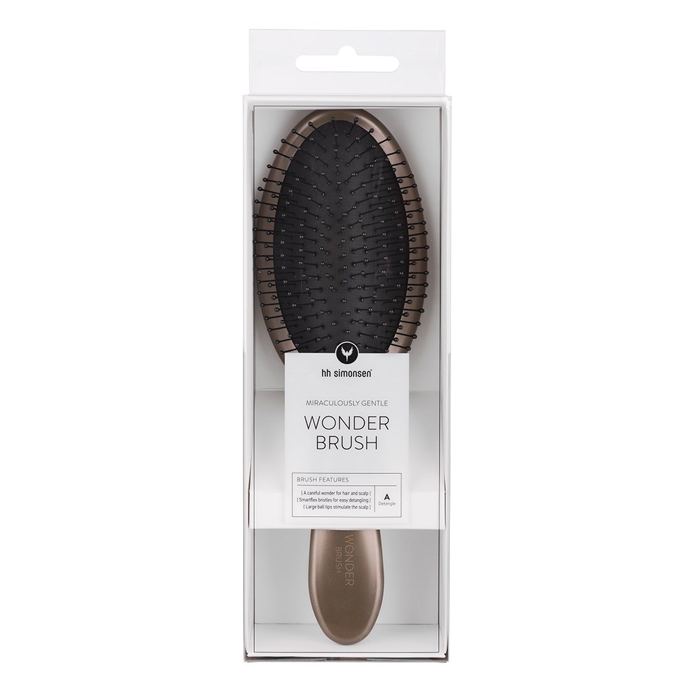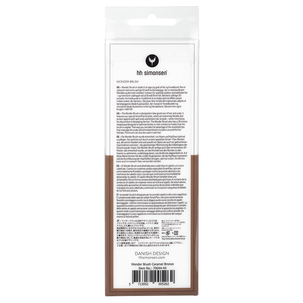 A brush is not just a brush. HH Simonsen can prove it. Danish design at its best, HH Simonsen introduces the miraculously gentle Wonder Brush in Caramel Bronze. By hairdressers for hairdressers, the Wonder Brush features Smartflex bristles which are extremely flexible and protect against damage. 3D convex shaped pad design optimises bristle-to-hair contact. Large ball tips stimulate the scalp. Simply, easier detangling with less hair breakage.