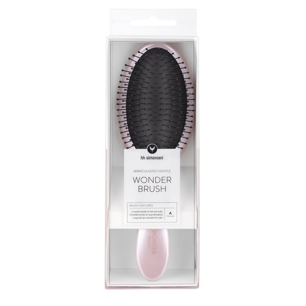 A brush is not just a brush. HH Simonsen can prove it. Danish design at its best, HH Simonsen introduces the miraculously gentle Wonder Brush in Pink Champagne. By hairdressers for hairdressers, the Wonder Brush features Smartflex bristles which are extremely flexible and protect against damage. 3D convex shaped pad design optimises bristle-to-hair contact. Large ball tips stimulate the scalp. Simply, easier detangling with less hair breakage.