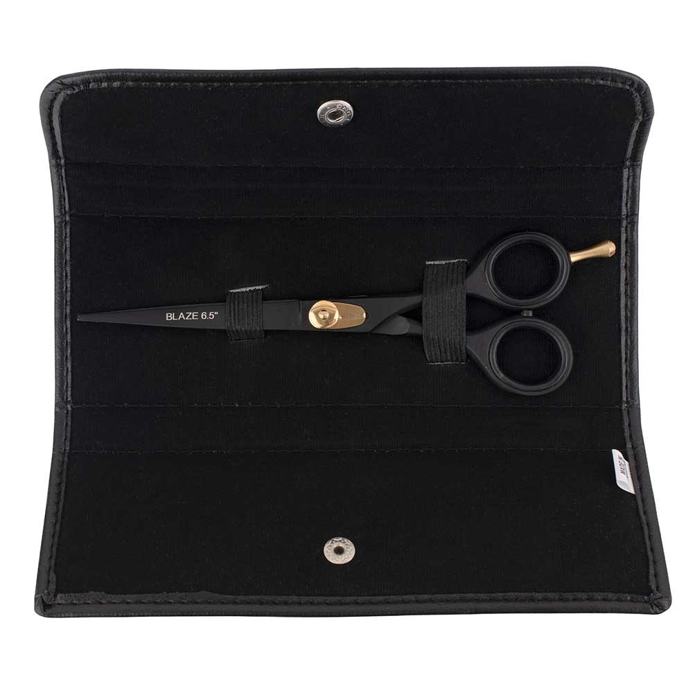 Iceman’s chicest scissors ever. In all black with gold detailing, Iceman Blaze 6.5” Black Hairdressing Scissors feature hand-honed stainless steel blades for truly exceptional cutting performance. A great choice for barbering work, these scissors have superb ergonomics with a level set handle, removable finger rest and adjustable, raised tension dial. Ideal scissors for apprentices or a backup pair for your hairdressing kit.