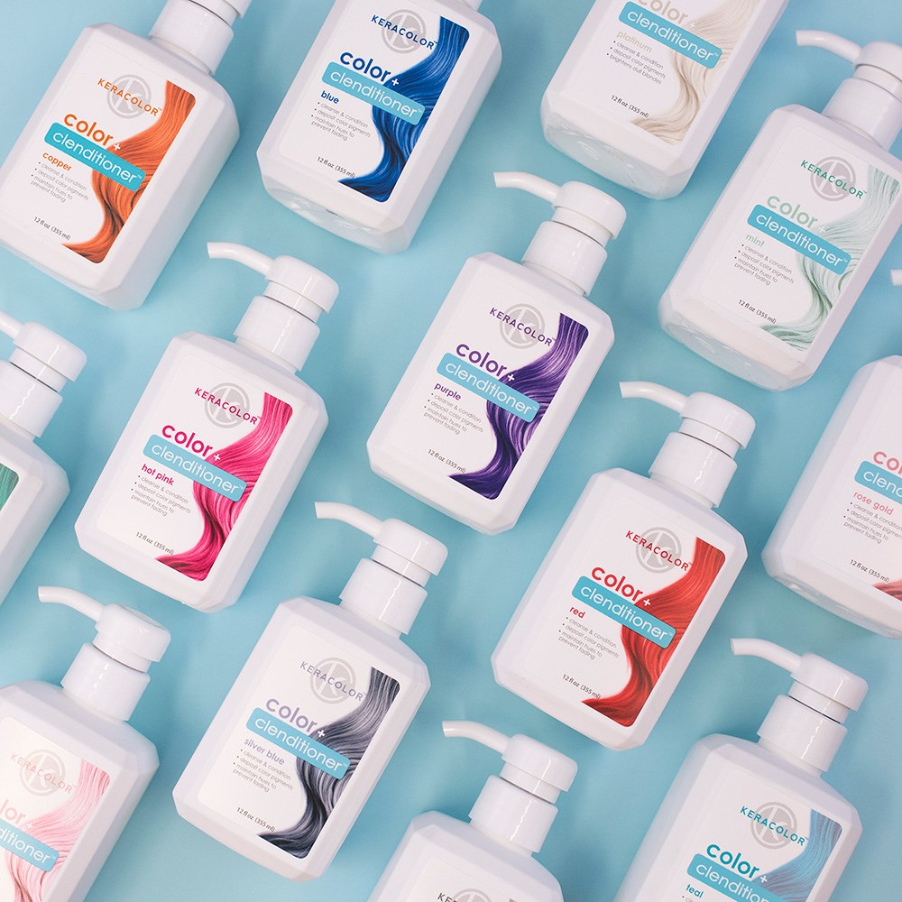Keracolor Color Clenditioner Colour Shampoo in Silver Blue deposits direct dye with every wash, leaving hair clean, soft, shiny and full of lush colour. Add a boost of colour to your client’s hair at the basin as you shampoo and condition! Clients with brightly coloured hair can use Keracolor Color Clenditioner at home to maintain their colour vibrancy. Pigment can last up to 10-15 washes, depending on porosity and pre-lightened level.