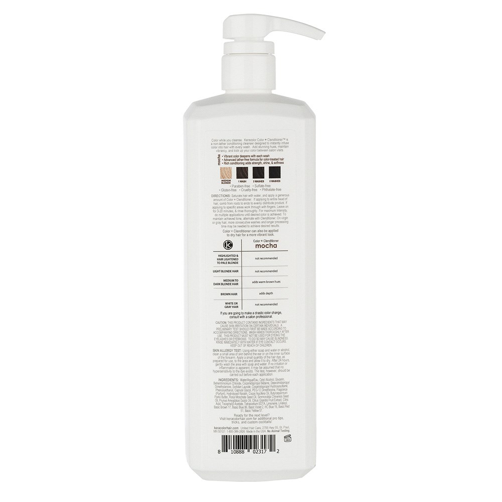 Meet Mocha. Rich, warm and chocolatey, Keracolor Color + Clenditioner Conditioning Shampoo Mocha 1L is perfect for faded brunettes or dark blondes wanting to be darker. Colour while you cleanse with this non-lather conditioning cleanser designed to instantly infuse semi-permanent direct dye pigments into hair with every wash. Add stunning semi-permanent hues, maintain vibrancy and kick up colour between salon visits. Large 1 litre size.