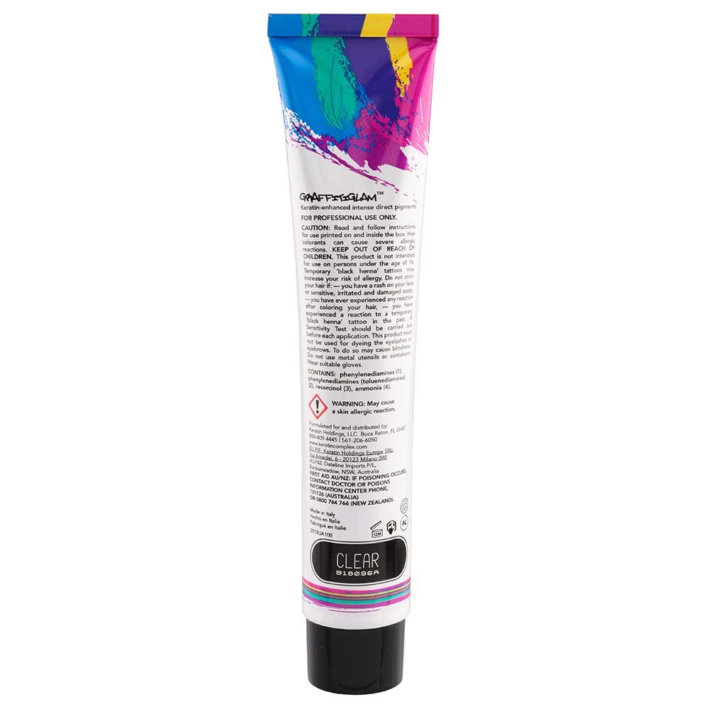 Glamorous, beautiful hair colour inspired by the vibrant art form, graffiti. Keratin Complex GraffitiGlam Hair Colour Clear is a dynamic ammonia-free, semi-permanent, keratin-enhanced, direct dye hair colour. Use to create bold, expressive colour or intermix with Clear to produce soft, pastel hues. Advanced, patented technology with precisely proportioned, protein-rich formulas of keratin and ceramides reduces porosity and prevents damage. Unrivalled long-lasting, even colour which strengthens hair.