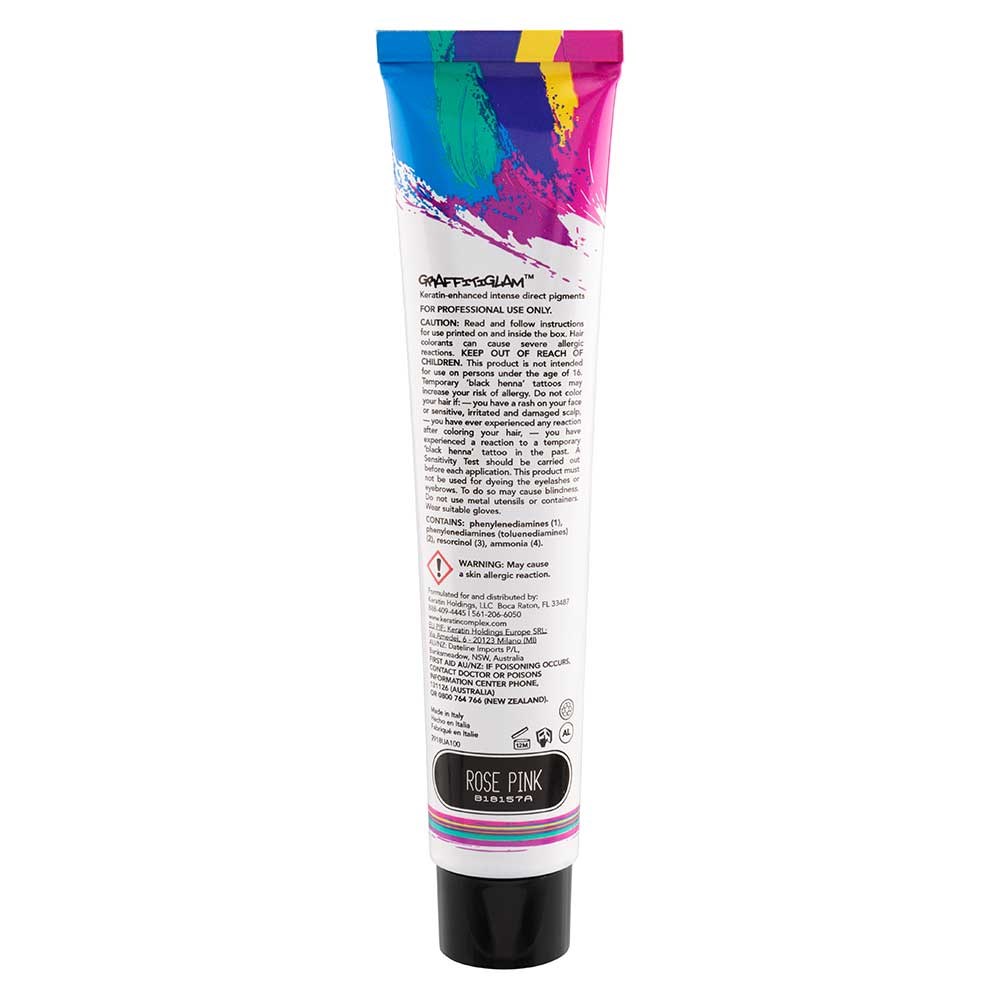 Glamorous, beautiful hair colour inspired by the vibrant art form, graffiti. Keratin Complex GraffitiGlam Hair Colour Rose Pink is a dynamic ammonia-free, semi-permanent, keratin-enhanced, direct dye hair colour. Use to create bold, expressive colour or intermix with Clear to produce soft, pastel hues. Advanced, patented technology with precisely proportioned, protein-rich formulas of keratin and ceramides reduces porosity and prevents damage. Unrivalled long-lasting, even colour which strengthens hair.
