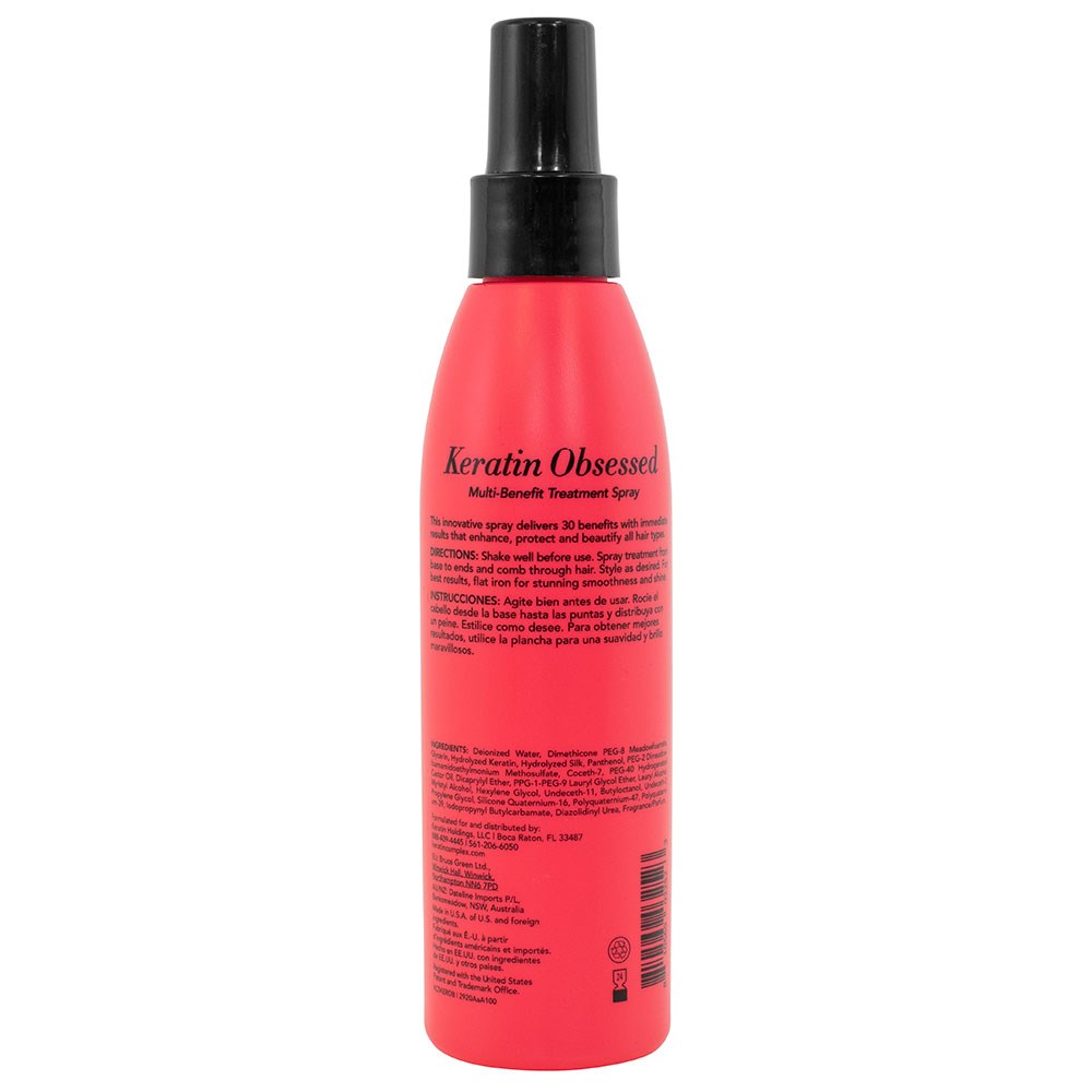 The Keratin Complex Keratin Obsessed is a Multi Benefit Treatment Spray that packs in 30 benefits for all hair types. Benefits include but are not limited to, eliminating frizz, repairing damage, strengthening, nourishing, smoothing, softening, increasing manageability, lightweight, style refresher, intensifying colour, fights fading and much, much more.