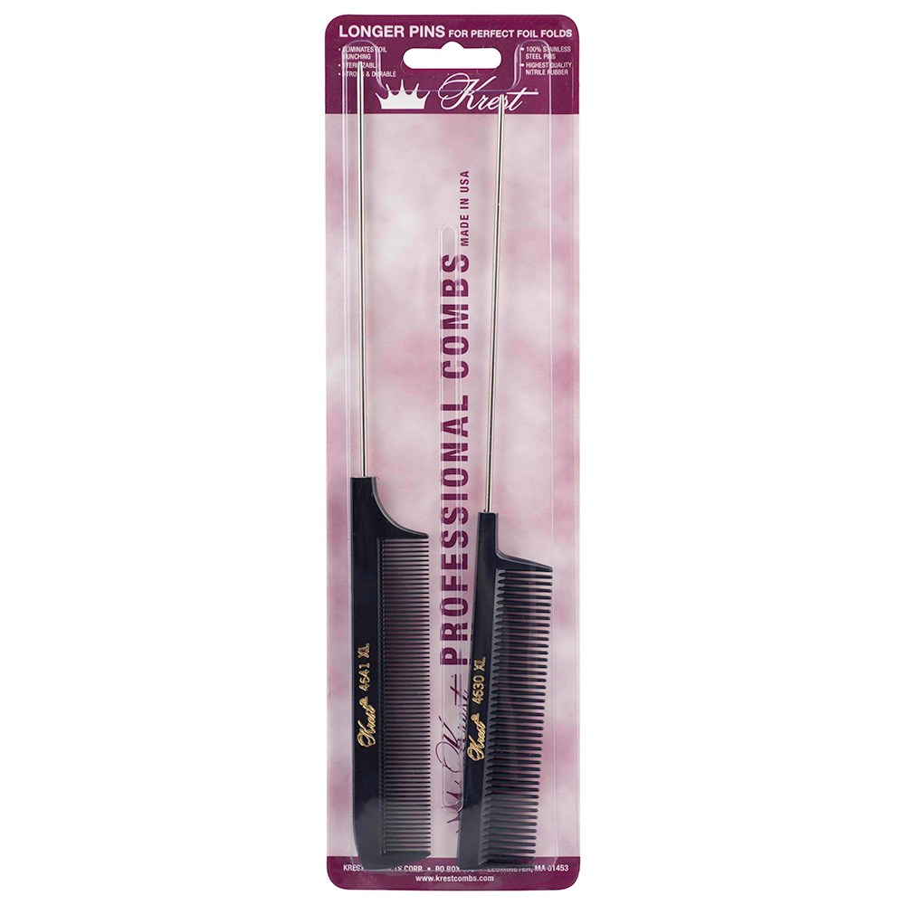 The Krest Professional Foiling Hair Comb Twin pack features two combs for the perfect foil fold. The combs eliminate foil bunching caused by a shorter pin and span sectioned hair for complete separation. Ideal for weaving. Manufactured from the highest quality materials, including stainless steel pins, for superior strength and durability.