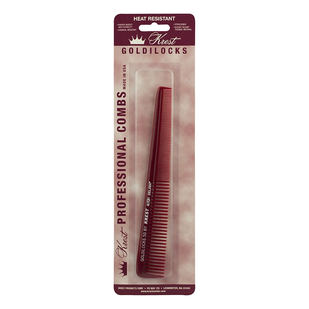 Krest Goldilocks Cutting Comb is made from DuPont Delrin for added strength, low friction and heat resistance. Krest Combs features wide teeth for low tension combing on thick or curly hair, and fine teeth for precision cutting with tension and control.