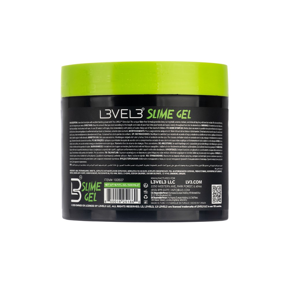 Level up. L3VEL3 Slime Hair Gel 500mL Super Strong Hold elevates your styling game. This cutting-edge gel is designed to secure your style with long-lasting hold while adding shine, volume and texture. The unique gel texture allows for far easier application, creating sleek or voluminous styles with ease. Control and style flexibility you crave while also eliminating frizz. With a water-based, flake-free formula, the gel washes out effortlessly without leaving any residue, making it ideal for daily use. LEVEL 3 is by the artist for the artist, aiming to reinvent the barbering industry with high calibre products without the high price.