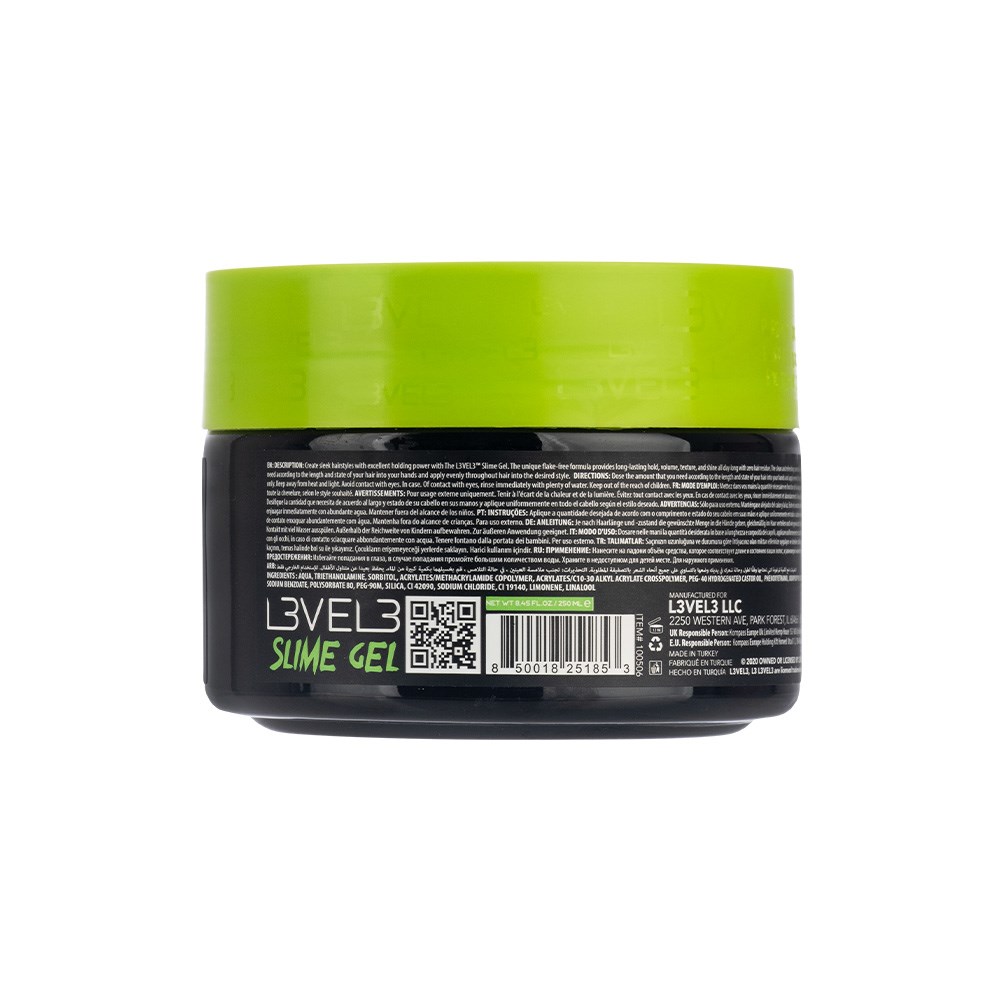 Level up. L3VEL3 Slime Hair Gel Super Strong Hold elevates your styling game. This cutting-edge gel is designed to secure your style with long-lasting hold while adding shine, volume and texture. The unique gel texture allows for far easier application, creating sleek or voluminous styles with ease. Control and style flexibility you crave while also eliminating frizz. With a water-based, flake-free formula, the gel washes out effortlessly without leaving any residue, making it ideal for daily use. LEVEL 3 is by the artist for the artist, aiming to reinvent the barbering industry with high calibre products without the high price.