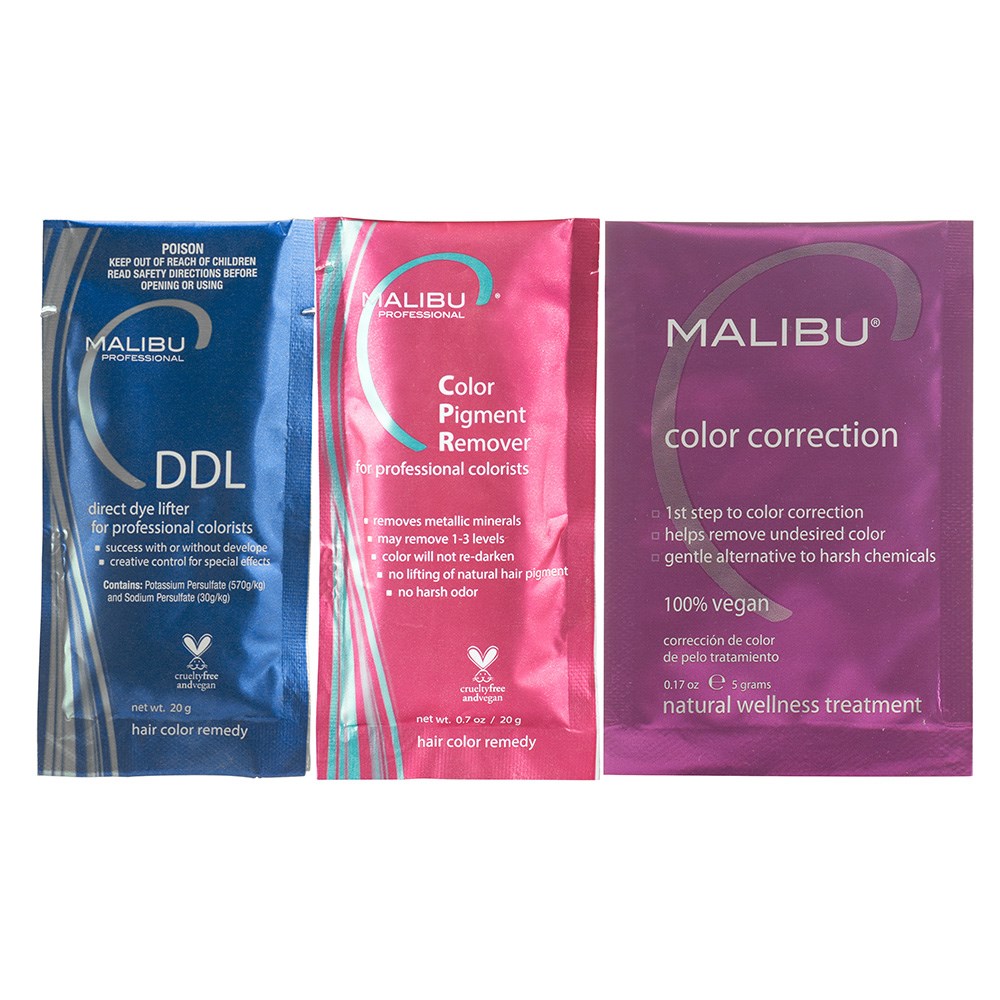 Malibu C Colour Pigment Remover is the first step to superior colour correction. This antioxidant vitamin complex removes unwanted pigment from oxidised hair colour deposited with up to 20 volume developer up to 3 levels. Vegan, the ready to mix crystals activate on the spot for maximum potency and easy application. Can be immediately followed by colour or bleach.